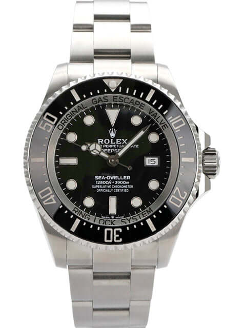 Case made of polished and satin-finished stainless steel, case diameter 44 mm, case height 17.8 mm, stainless steel bezel with grooves and black ceramic inlay, 60-minute scale and luminous dot unidirectionally rotatable, helium valve at the 9 o'clock position, satin-finished Oyster stainless steel bracelet with safety folding clasp, black dial with applied luminous indices and luminous dots. Luminous hands, automatic, Rolex manufacture caliber 3235 with 31 jewels, frequency 28,800 A/h, power reserve 70 hours, date display, chronometer, scratch-resistant sapphire crystal, domed, extra strong, screw-down Triplock crown with shoulder protection, screw-down and engraved stainless steel case back, waterproof up to 390 bar.
