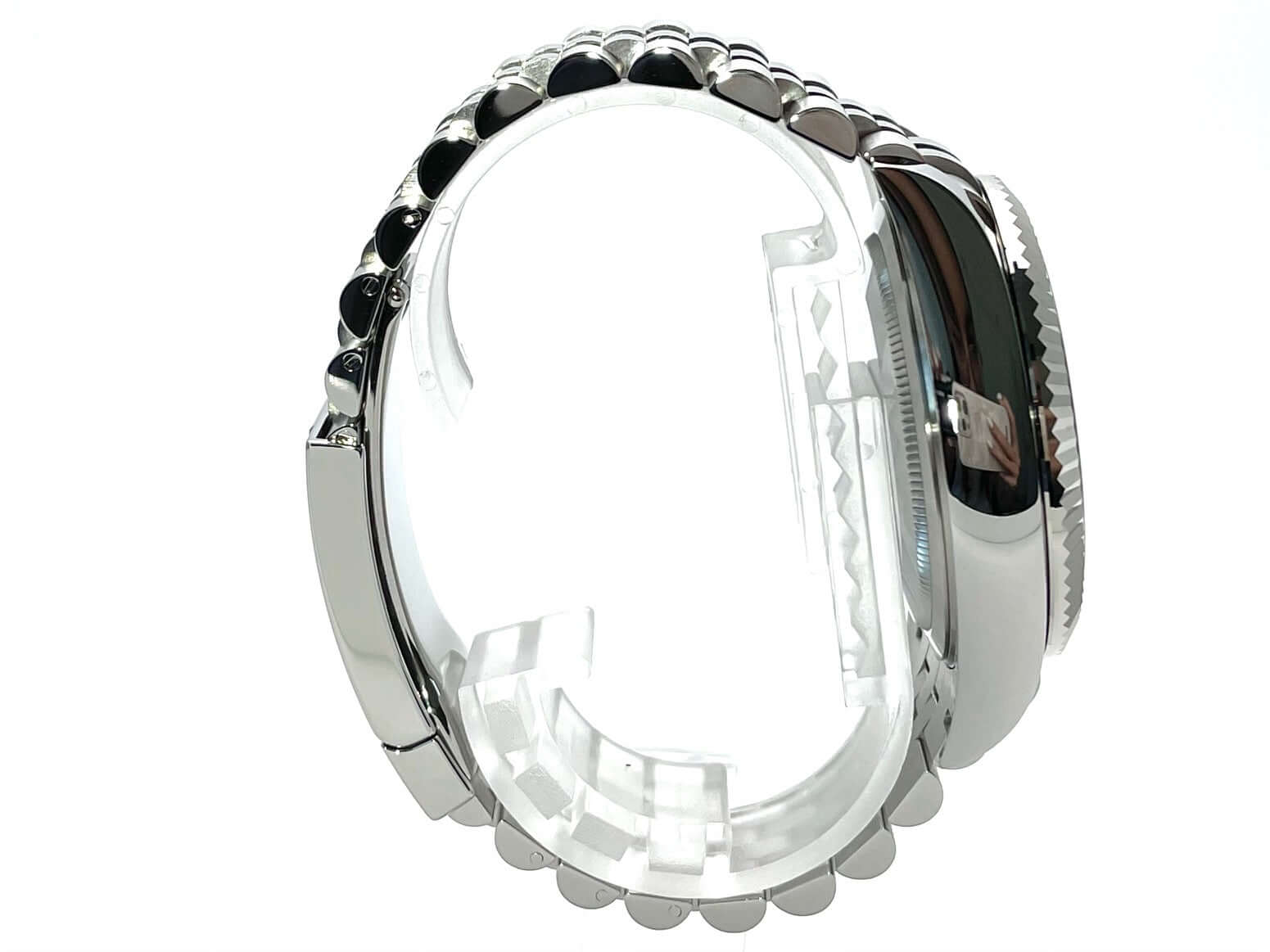 Case made of polished and satin-finished stainless steel, case diameter 42 mm, case height 14 mm, two-way rotating ring command bezel made of 18 kt white gold, Jubile bracelet made of polished and satin-finished stainless steel with Oysterclasp folding clasp, blue dial with applied luminous indices, luminous hands, Automatic movement, Rolex manufacture caliber 9001 with 40 jewels, vibration 28,800 A/h, power reserve for approx. 72 hours, chronometer, SAROS annual calendar, display of the month in the viewing window, scratch-resistant sapphire crystal, screw-down crown, screw-down stainless steel base, water-resistant up to 10 bar.