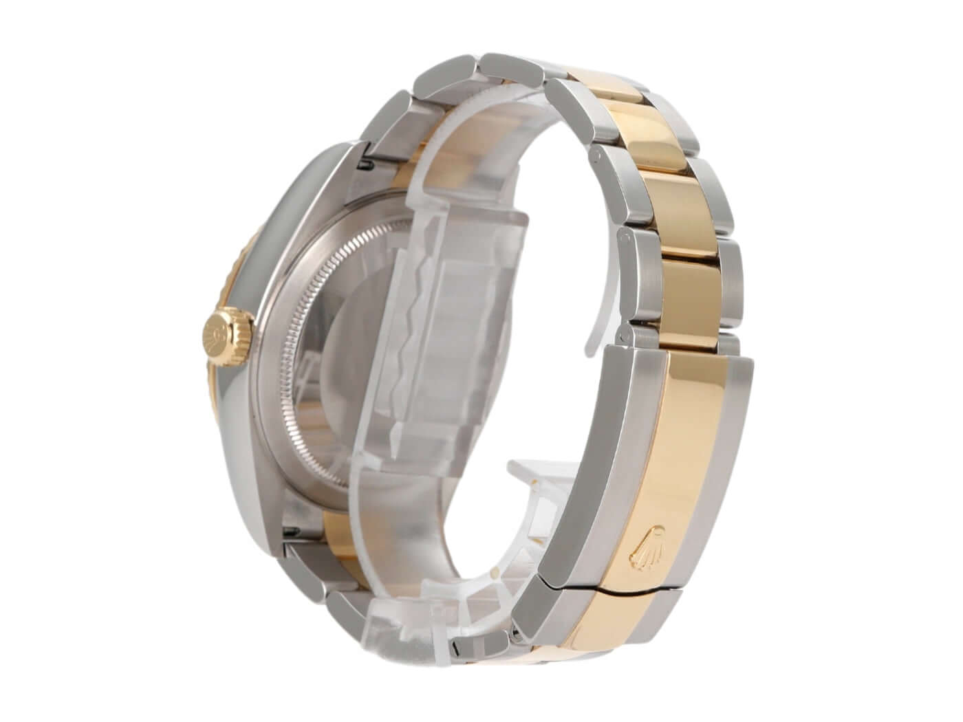 Case made of stainless steel / polished and satin-finished yellow gold, case diameter 42 mm, case height 14 mm, bi-directional rotating ring command bezel made of 18 kt yellow gold, Oyster bracelet made of stainless steel / polished and satin-finished 18 kt yellow gold with Oysterclasp folding clasp, black dial with applied luminous indices, luminous hands, automatic movement, Rolex manufacture caliber 9001 with 40 jewels, frequency 28,800 A/h, power reserve of approximately 72 hours, chronometer, SAROS annual calendar, month display in a window, scratch-resistant sapphire crystal, screw-down crown made of 18 kt yellow gold, screw-down stainless steel case back, water-resistant up to 10 bar.