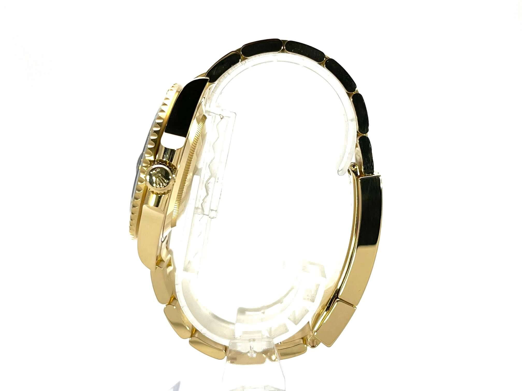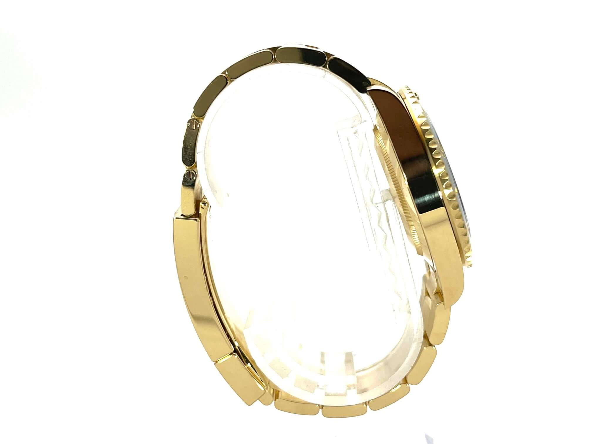 Case made of 18 carat yellow gold polished and satin finished, case diameter 41 mm, case height 12.5 mm, 18 carat yellow gold bezel fluted with black ceramic inlay, 60 minute scale and luminous dot rotatable, Oyster 18 carat yellow gold bracelet polished and satin finished with safety folding clasp, black dial with applied luminous indices and luminous dots, luminous hands, automatic movement, Rolex 3235 caliber with 31 jewels, 28,800 A/h, 70 hour power reserve, date display with quick adjustment and magnifying glass, chronometer, sapphire crystal, screwed crown with side protection, 18 carat yellow gold screwed back, water resistant up to 30 bar .