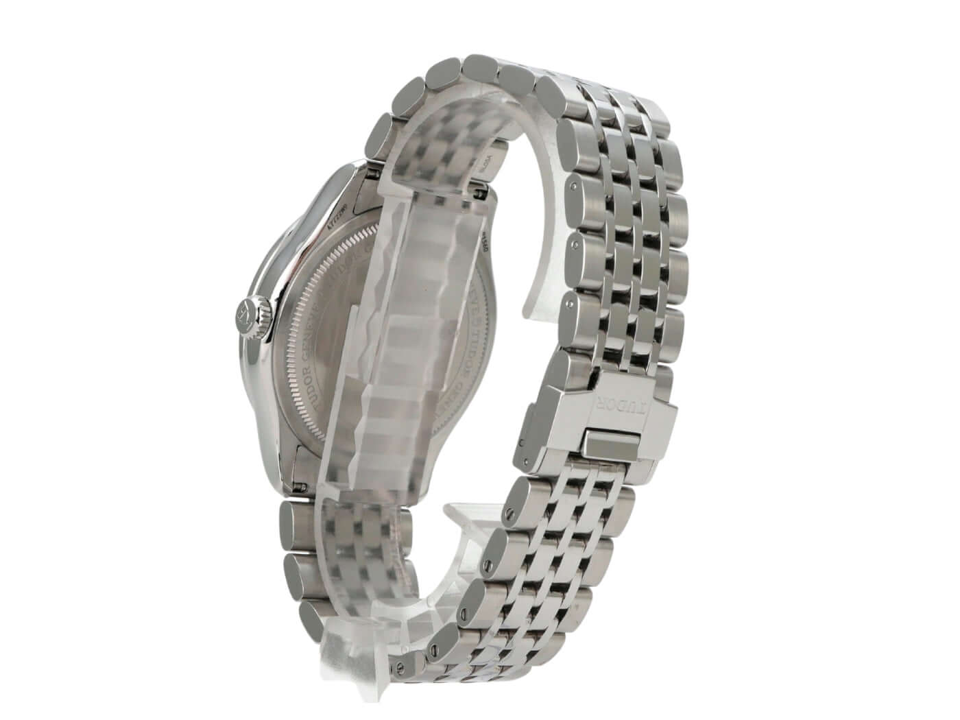 Case made of polished and satin-finished stainless steel, case diameter 39 mm, polished stainless steel bezel, stainless steel bracelet with folding clasp, black dial with sunray finish and Arabic numerals, moon phase, automatic, Caliber T607-9, power reserve of 38 hours, sapphire crystal, screwed stainless steel case back, water-resistant up to 10 bar.