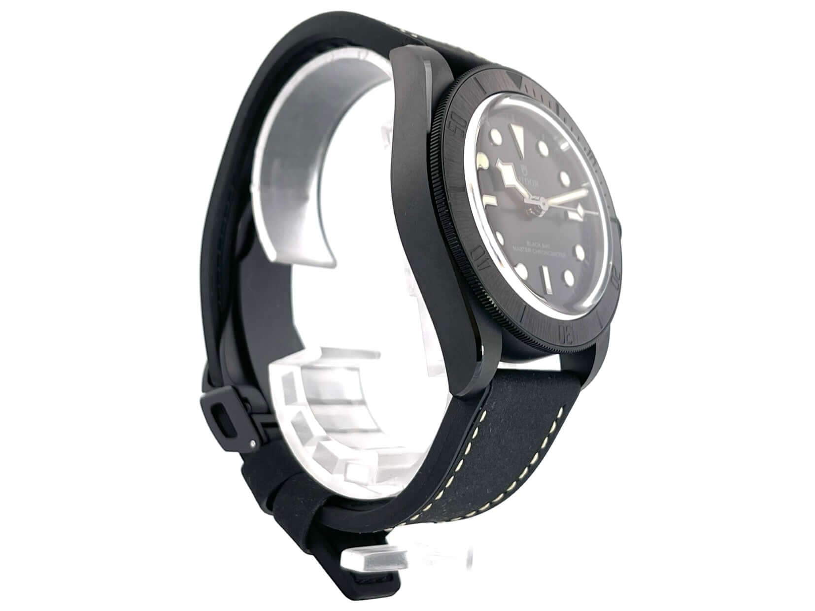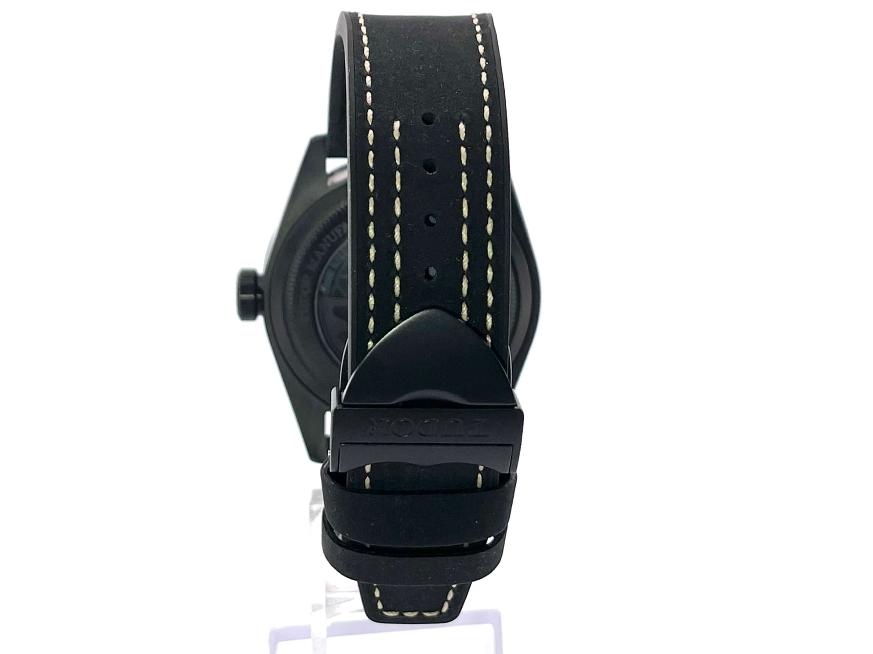 Case made of ceramic polished and satin-finished, case diameter 41 mm, case height 14.7 mm, stainless steel bezel with black inlay, 60 minute scale and luminous dot rotatable on one side, black rubber/leather strap with safety folding clasp, black dial with applied luminous indices, luminous hands, automatic, in-house caliber Tudor MT5602-1U, 70 hour power reserve, chronometer, sapphire crystal, screw-down crown, stainless steel back with black PVD coating and viewing window, water resistant up to 20 bar.