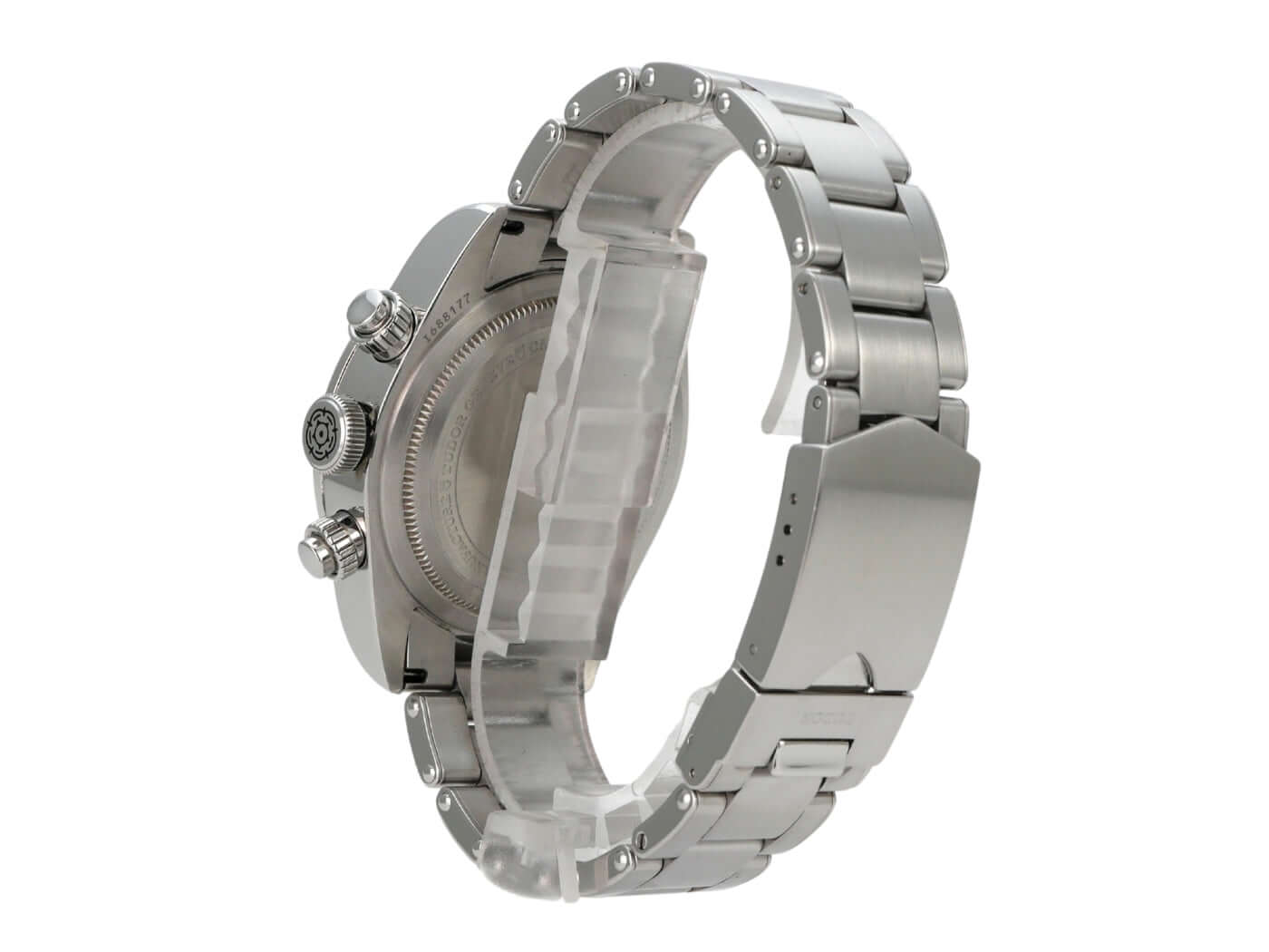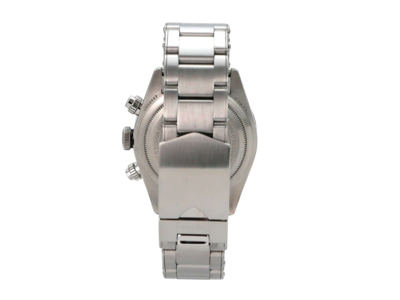 Case made of polished and satin-finished stainless steel, case diameter 41 mm, case height 12.7 mm, stainless steel bezel with 60-minute scale and luminous dot, unidirectional rotating, stainless steel bracelet with folding clasp, textile strap with pin buckle, black dial with applied luminous indices, luminous hands, automatic, Tudor manufacture caliber MT5813, 70-hour power reserve, chronograph, date, chronometer, sapphire crystal, screw-down crown, screwed and engraved stainless steel case back, water-resistant up to 20 bar.