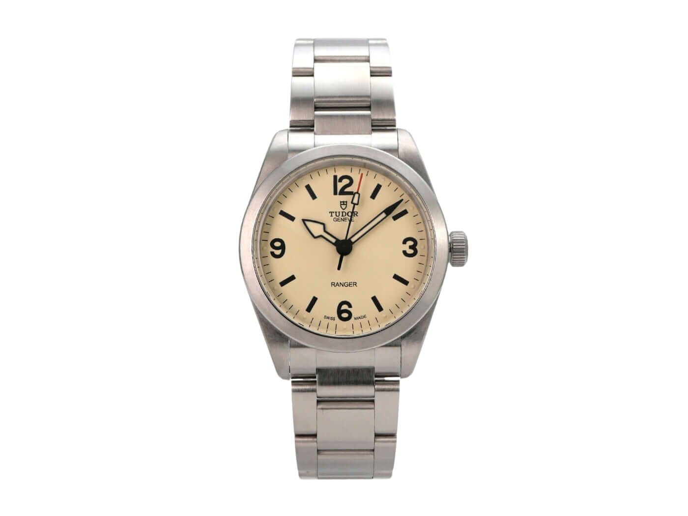Case polished stainless steel, case diameter 36 mm, case height 11 mm, bezel polished stainless steel, bracelet in stainless steel with folding clasp, beige dial with Arabic numerals and indices, automatic winding, Tudor MT5400, power reserve of 70 hours, sapphire crystal, screwed stainless steel case back, water-resistant up to 10 bar.