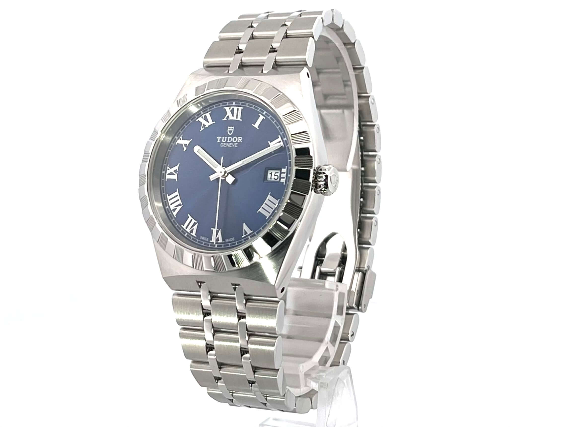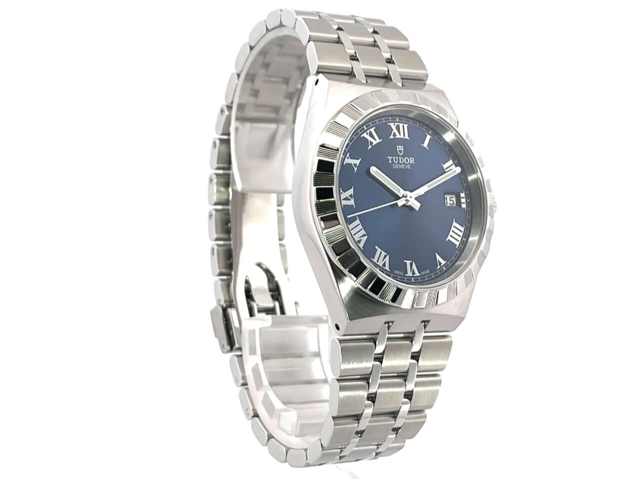 Case made of polished and satin-finished stainless steel, case diameter 38 mm, fluted stainless steel bezel, stainless steel strap with folding clasp, blue dial with Roman numerals, automatic, Tudor T601 , power reserve for 38 hours, sapphire crystal, screwed stainless steel case back, water resistant up to 10 bar.