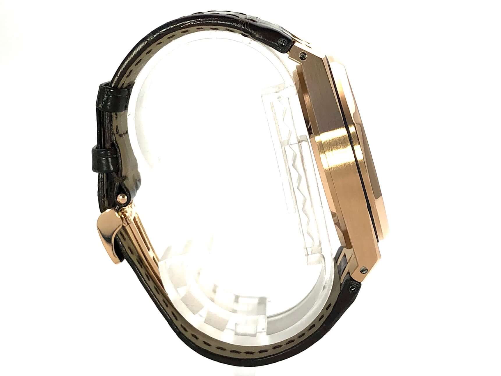 Gehäuse aus 18 kt Roségold poliert und satiniert, Gehäusedurchmesser 41 mm, Gehäusehöhe 11 mm, Roségold Lünette poliert, satiniert und verschraubt, braunes Krokoleder mit 18 kt Roségold Faltschließe, braunes Zifferblatt mit Leuchtindizes, Roségold Leuchtzeiger, Totalisatoren Roséfarben, Automatikwerk, Manufakturkaliber 2385 mit 37 Steine, Schwingung 21.600 A/h, Gangreserve für ca. 40 Stunden, Datumsanzeige, verschraubte Krone, entspiegeltes Saphirglas, Roségoldboden verschraubt und graviert, Wasserdicht bis zu 5 bar.