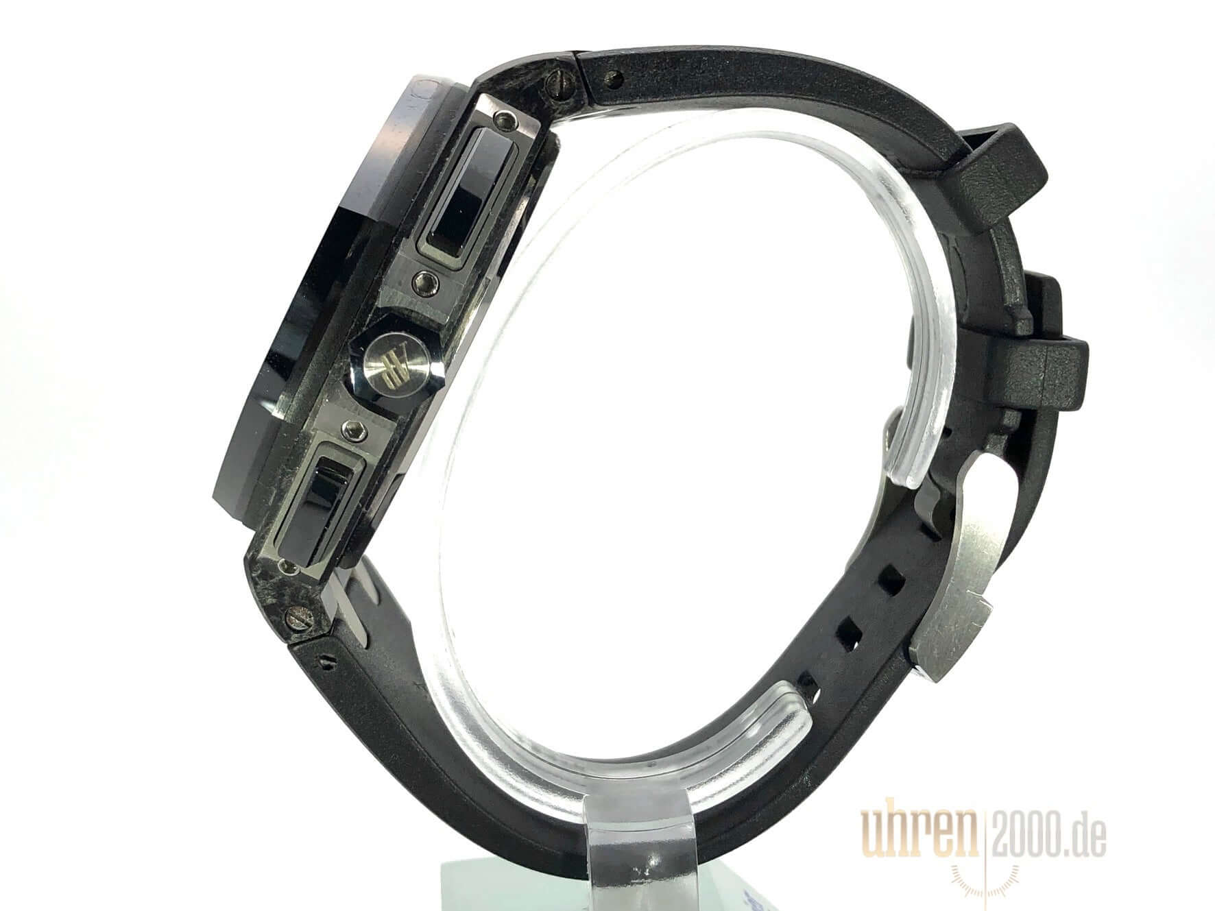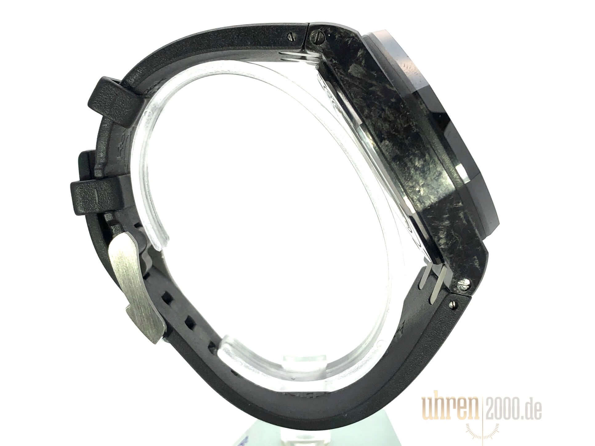 Gehäuse aus Carbon, Gehäusedurchmesser 44 mm, Gehäusehöhe 14,11 mm, Lünette Keramik verschraubt, schwarzes Kautschukband mit Dornschließe aus Titan, schwarzes Zifferblatt mit Leuchtindizes und Leuchtmarkierungen, Automatikwerk, Manufakturkaliber 3126 / 3840 mit 59 Steine, Schwingung 21.600 A/h, Gangreserve für ca. 50 Stunden, Datumsanzeige, entspiegeltes Saphirglas, Sichtboden verschraubt und graviert, Wasserdicht bis zu 10 bar.