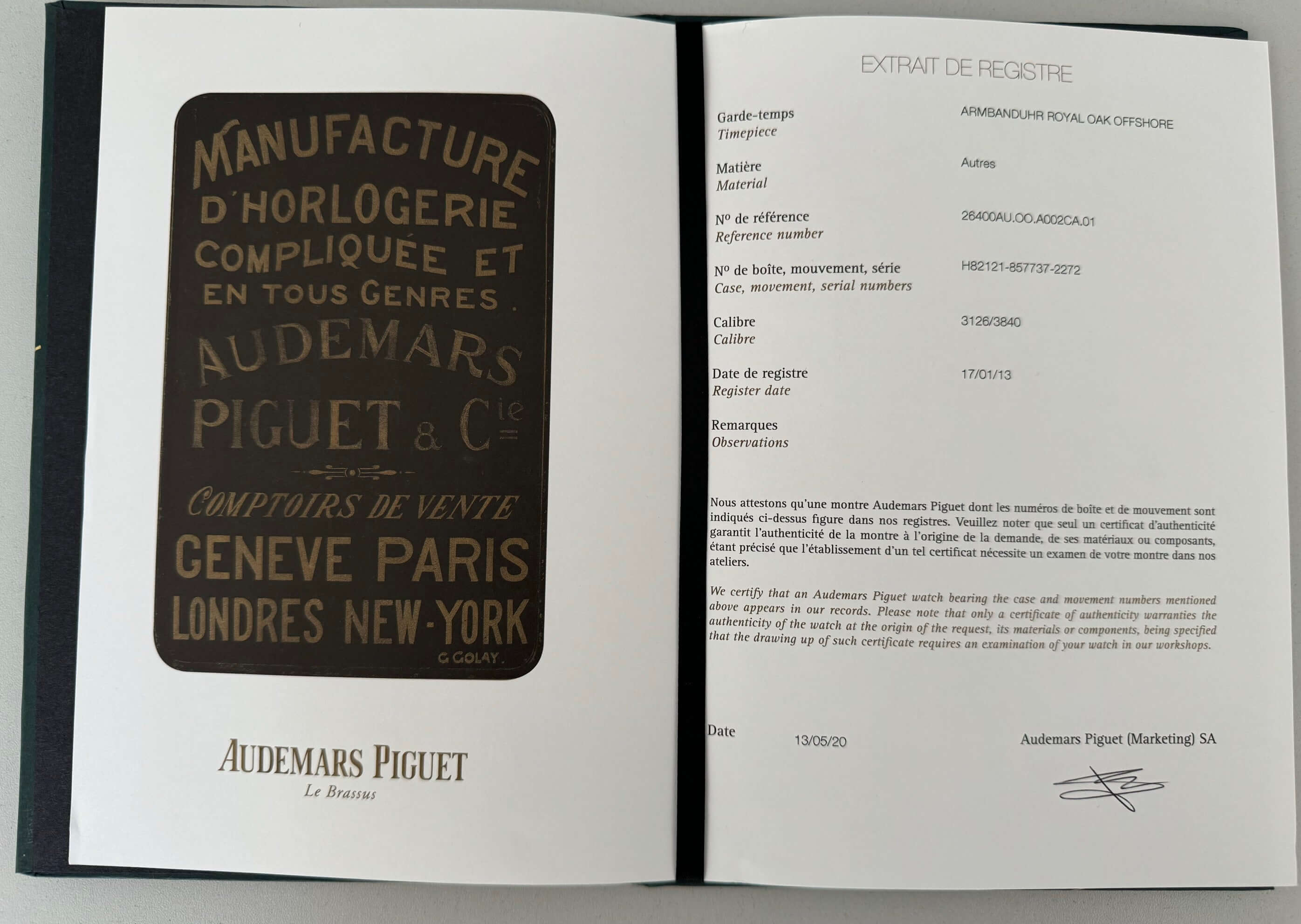 Audemars Piguet Royal Oak Offshore Chronograph Ref. 26400AU.OO.A002CA.01 Revision 2016