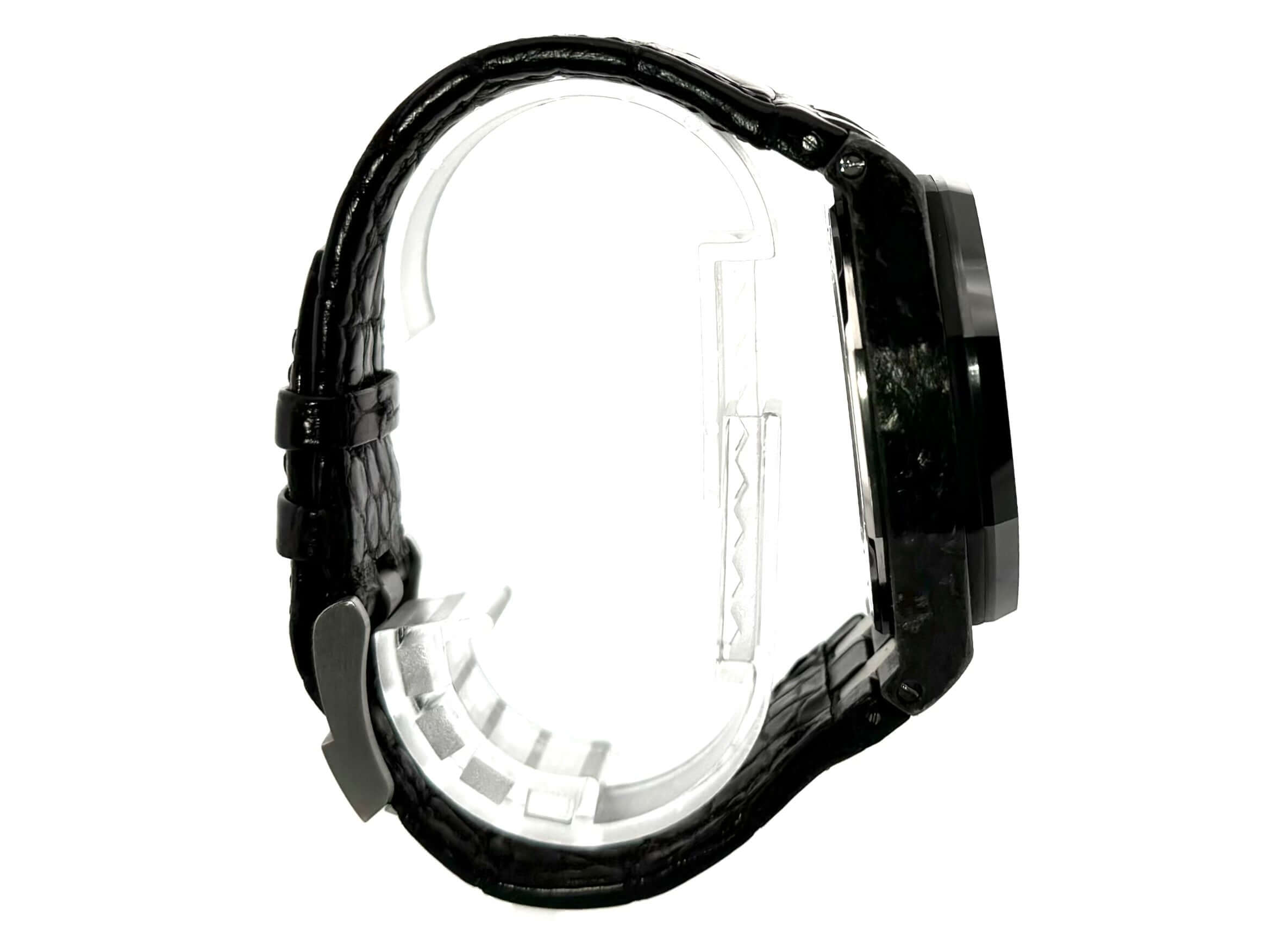 Gehäuse aus Carbon, Gehäusedurchmesser 44 mm, Gehäusehöhe 14,11 mm, Lünette Keramik verschraubt, Lederband mit Dornschließe aus Titan, zusätzliches Kautschukband im Lieferumfang, schwarzes Zifferblatt mit Leuchtindizes und Leuchtmarkierungen, Automatikwerk, Manufakturkaliber 3126 / 3840 mit 59 Steine, Schwingung 21.600 A/h, Gangreserve für ca. 50 Stunden, Datumsanzeige, entspiegeltes Saphirglas, Sichtboden verschraubt und graviert, Wasserdicht bis zu 10 bar.