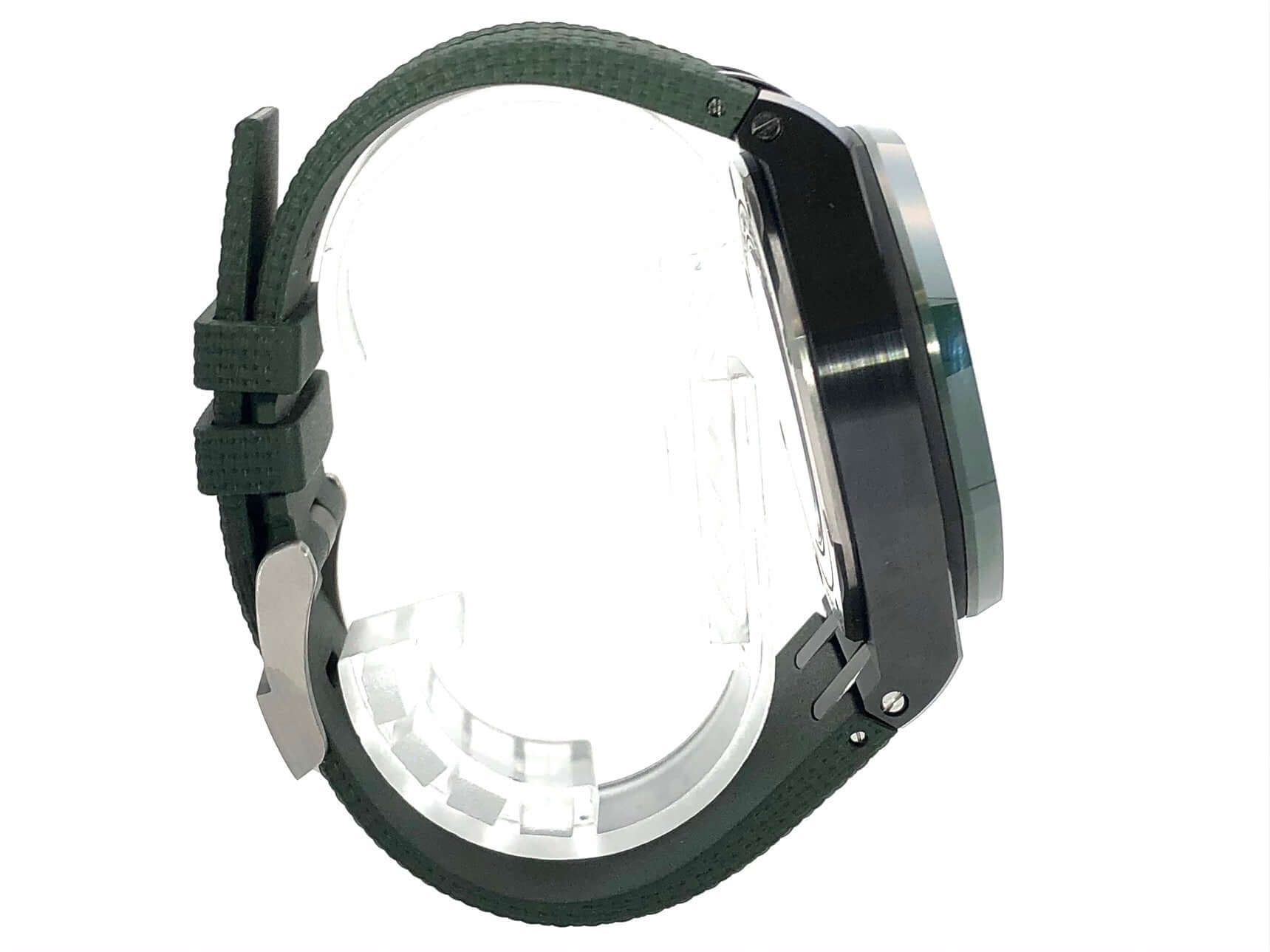Gehäuse aus Keramik, Gehäusedurchmesser 44 mm, Gehäusehöhe 14,4 mm, grüne Keramik Lünette verschraubt, grünes Kautschukband mit Dornschließe aus Titan, grünes Zifferblatt mit arabischen Leuchtziffern und Leuchtindizes, Automatikwerk, Manufakturkaliber 3126 / 3840 mit 59 Steine, Schwingung 21.600 A/h, Gangreserve für ca. 50 Stunden, Datumsanzeige, entspiegeltes Saphirglas, Sichtboden verschraubt und graviert, Wasserdicht bis zu 10 bar.