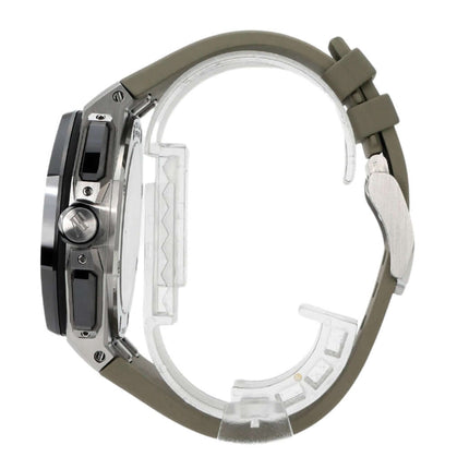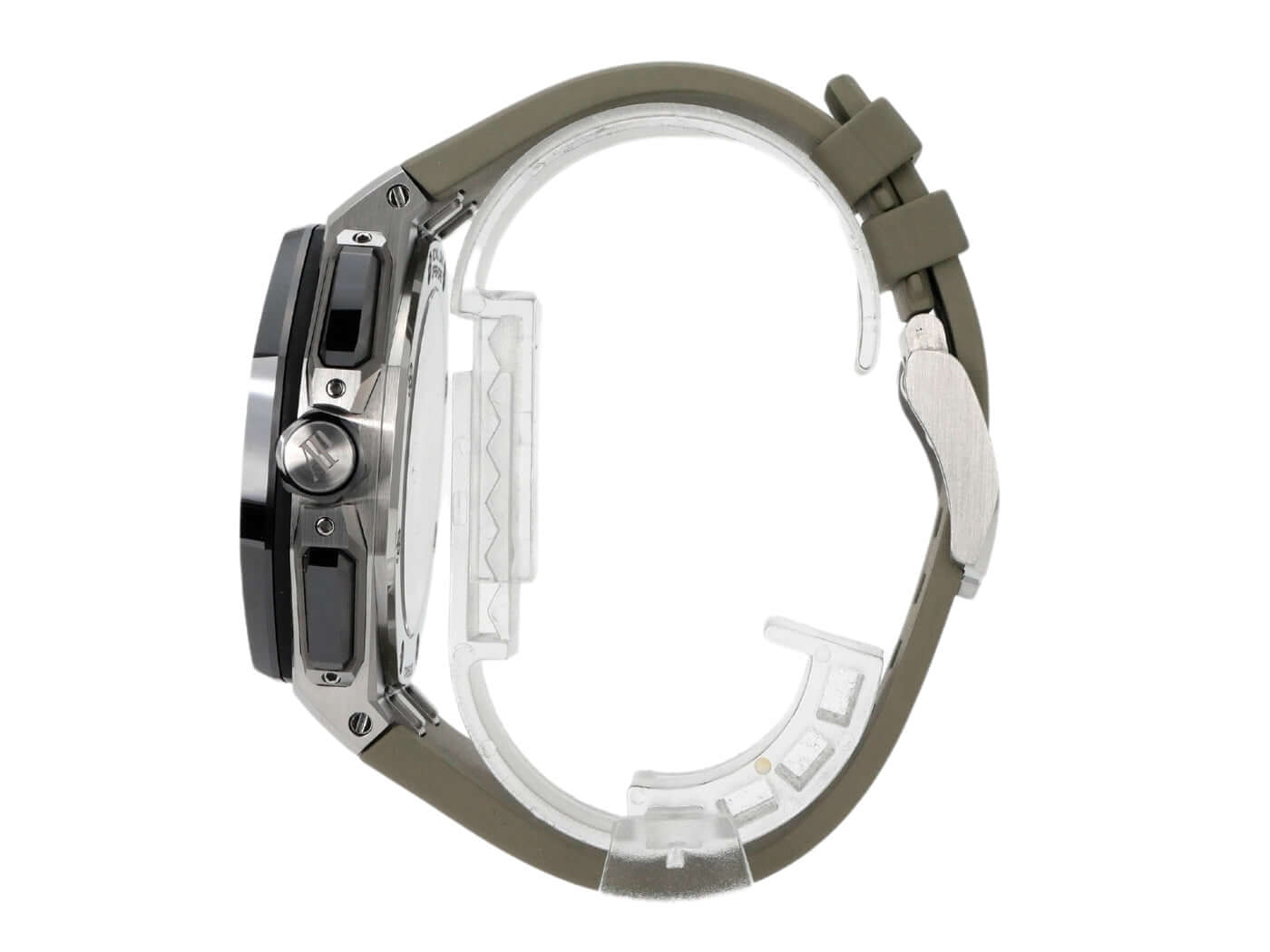 Gehäuse aus Edelstahl poliert und satiniert, Gehäusedurchmesser 43 mm, Gehäusehöhe 14,4 mm, schwarze Keramik Lünette, hellbraunes Kautschukband mit Edelstahl Dornschließe, zusätzlich schwarzes Kautschukband, braunes Zifferblatt mit Leuchtindizes, schwarze Totalisatoren, Tachymeter Skala, Automatikwerk, Manufakturkaliber 4401 mit 40 Steine, Schwingung 28.800 A/h, Gangreserve für ca. 70 Stunden, Chronograph, Datumsanzeige, Flyback-Funktion, entspiegeltes Saphirglas, Sichtboden verschraubt, Wasserdicht bis zu 10 bar.