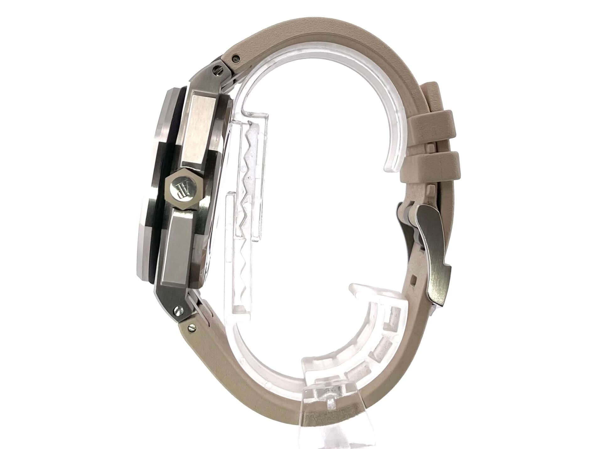 Gehäuse aus Edelstahl poliert und satiniert, Gehäusedurchmesser 42 mm, Gehäusehöhe 14,10 mm, Edelstahl Lünette poliert und satiniert, beigefarbenes Kautschukband mit Dornschließe, beigefarbenes Zifferblatt mit aufgesetzten Leuchtindizes und Leuchtmarkierungen, Automatikwerk, Manufakturkaliber 3120 mit 40 Steine, Schwingung 21.600 A/h, Gangreserve für ca. 60 Stunden, Datumsanzeige, kratzfestes Saphirglas, Boden aus Edelstahl mit Sichtfenster, Wasserdicht bis zu 30 bar.