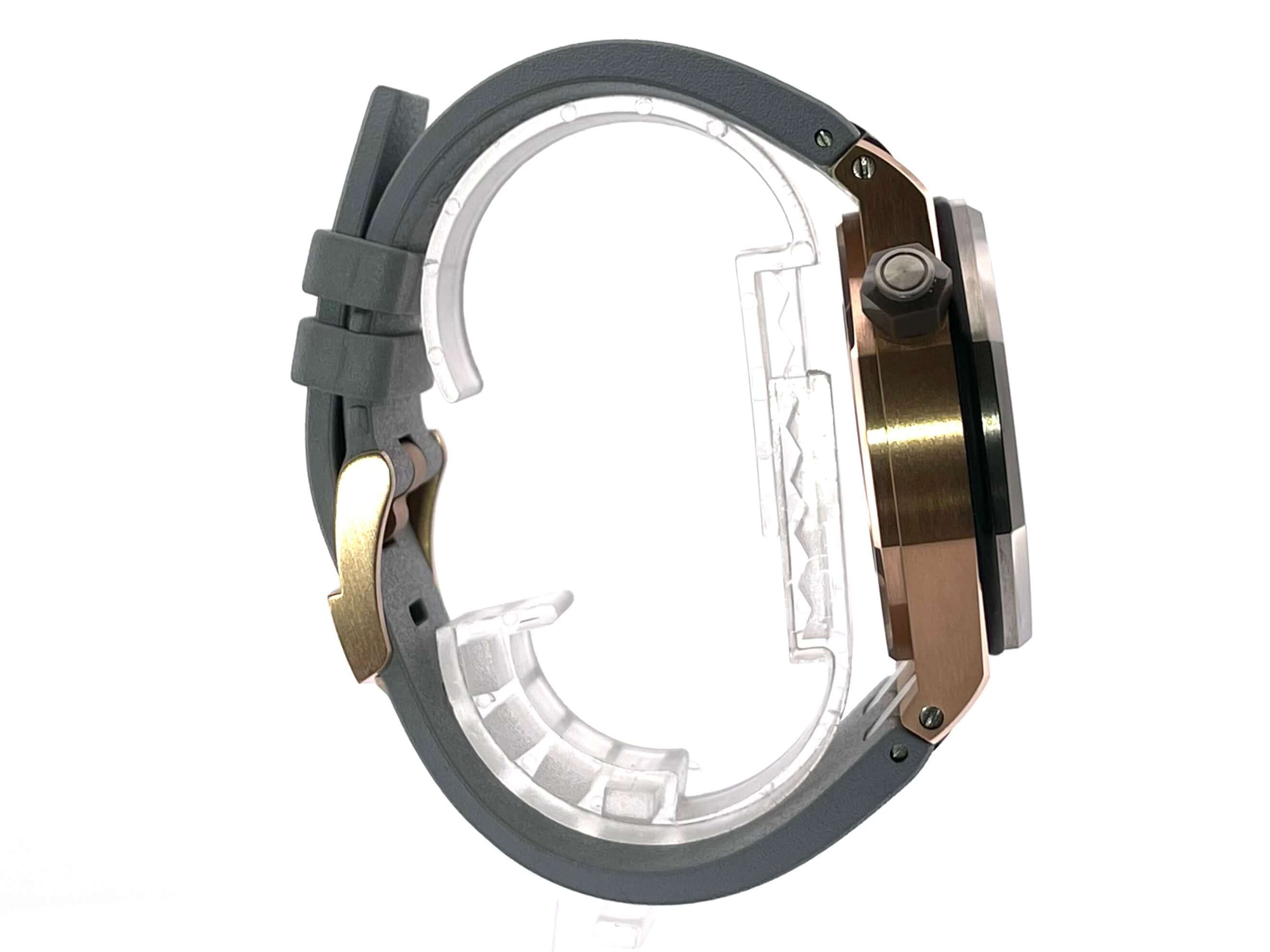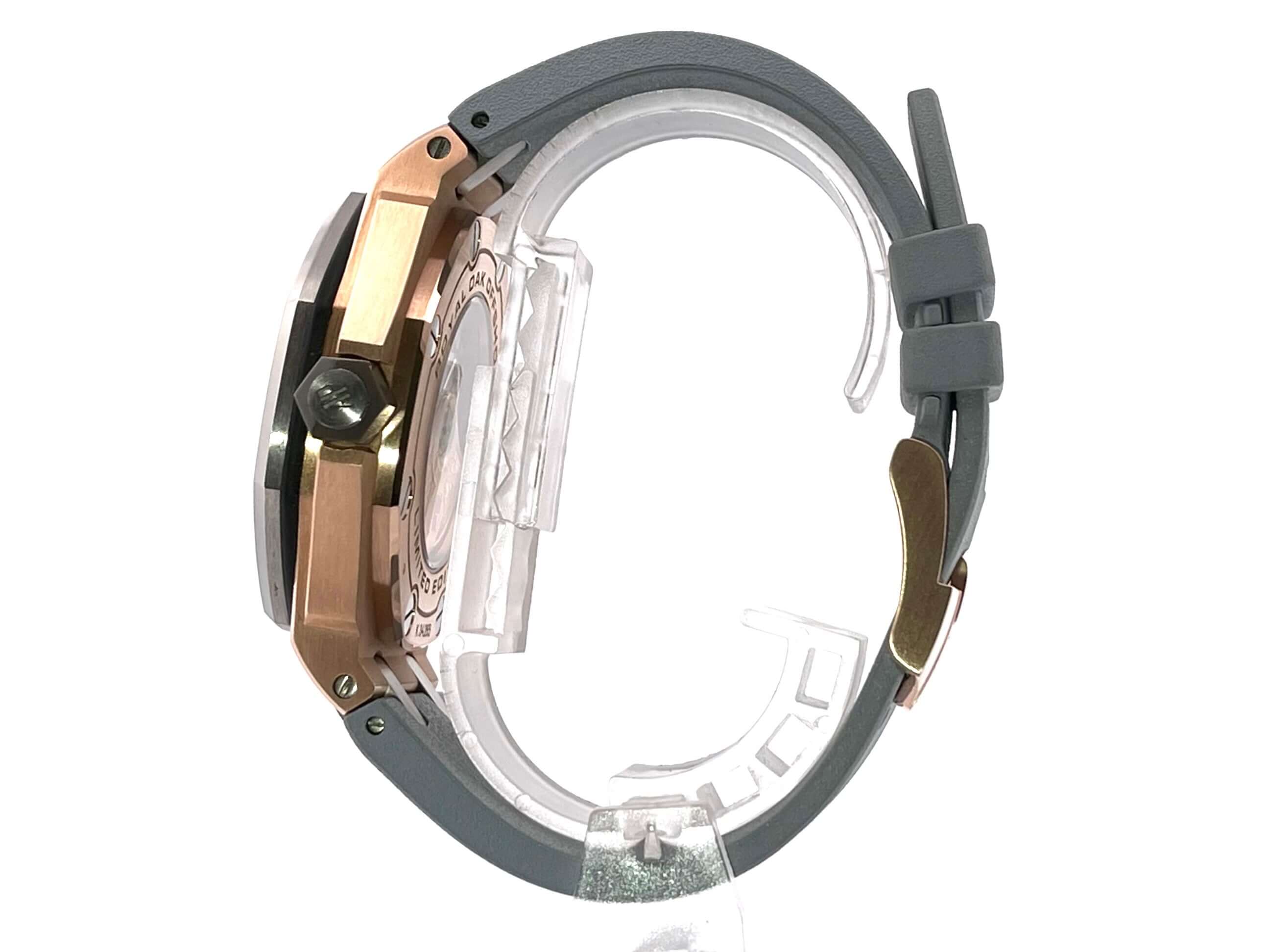 Gehäuse aus Roségold poliert und satiniert, Gehäusedurchmesser 42 mm, Gehäusehöhe 13,60 mm, Lünette aus Titan poliert und satiniert, graues Kautschukband mit Dornschließe, graues Zifferblatt mit aufgesetzten Leuchtindizes, Automatikwerk, Manufakturkaliber 3120 mit 40 Steine, Schwingung 21.600 A/h, Gangreserve für ca. 60 Stunden, Datumsanzeige, kratzfestes Saphirglas, Boden aus Roségold mit Sichtfenster, Wasserdicht bis zu 30 bar, limitiert auf 500 Stück.