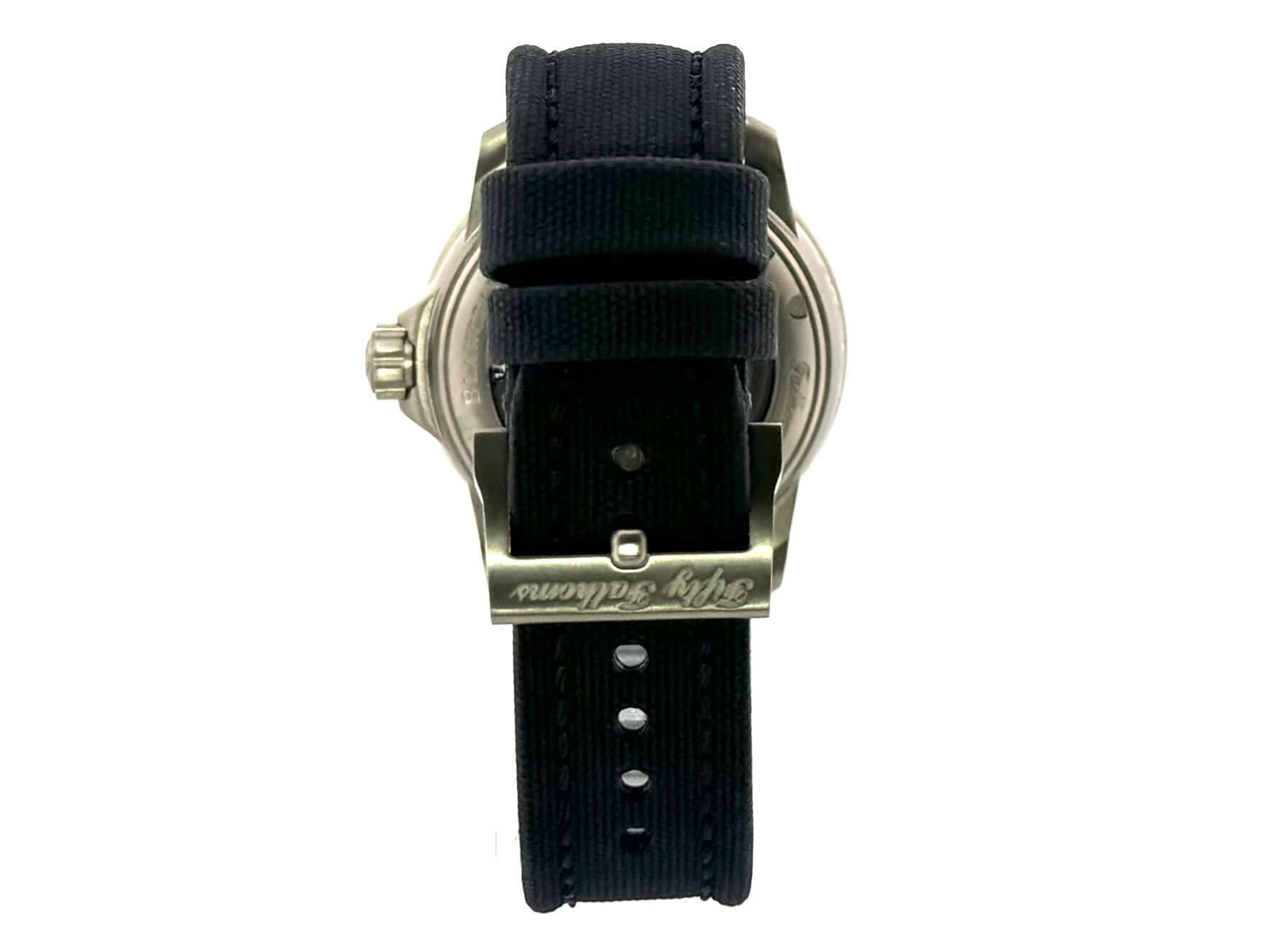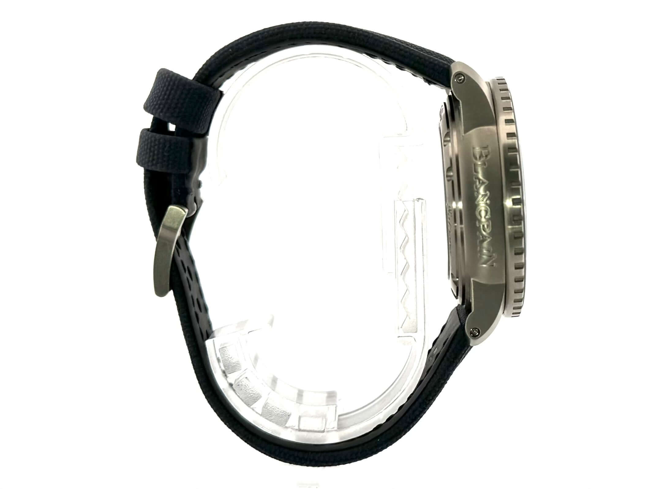 Gehäuse aus Titan, Gehäusedurchmesser 45 mm, Titan Lünette mit blauer Einlage, einseitig drehbar mit Sperre, blaues Segeltuchband mit Dornschließe, blaues Zifferblatt mit aufgesetzten Leuchtindizes, Leuchtzeiger, Sekundenzeiger mit Leuchtspitze, Zentralsekunde, Uhrwerk Automatik, Kaliber Blancpain 1315, 35 Steine, Gangreserve ca. 120 Stunden, Datum, Saphirglas, verschraubte Krone mit Flankenschutz, Titanboden mit Sichfenster, Wasserdicht bis zu 30 bar.