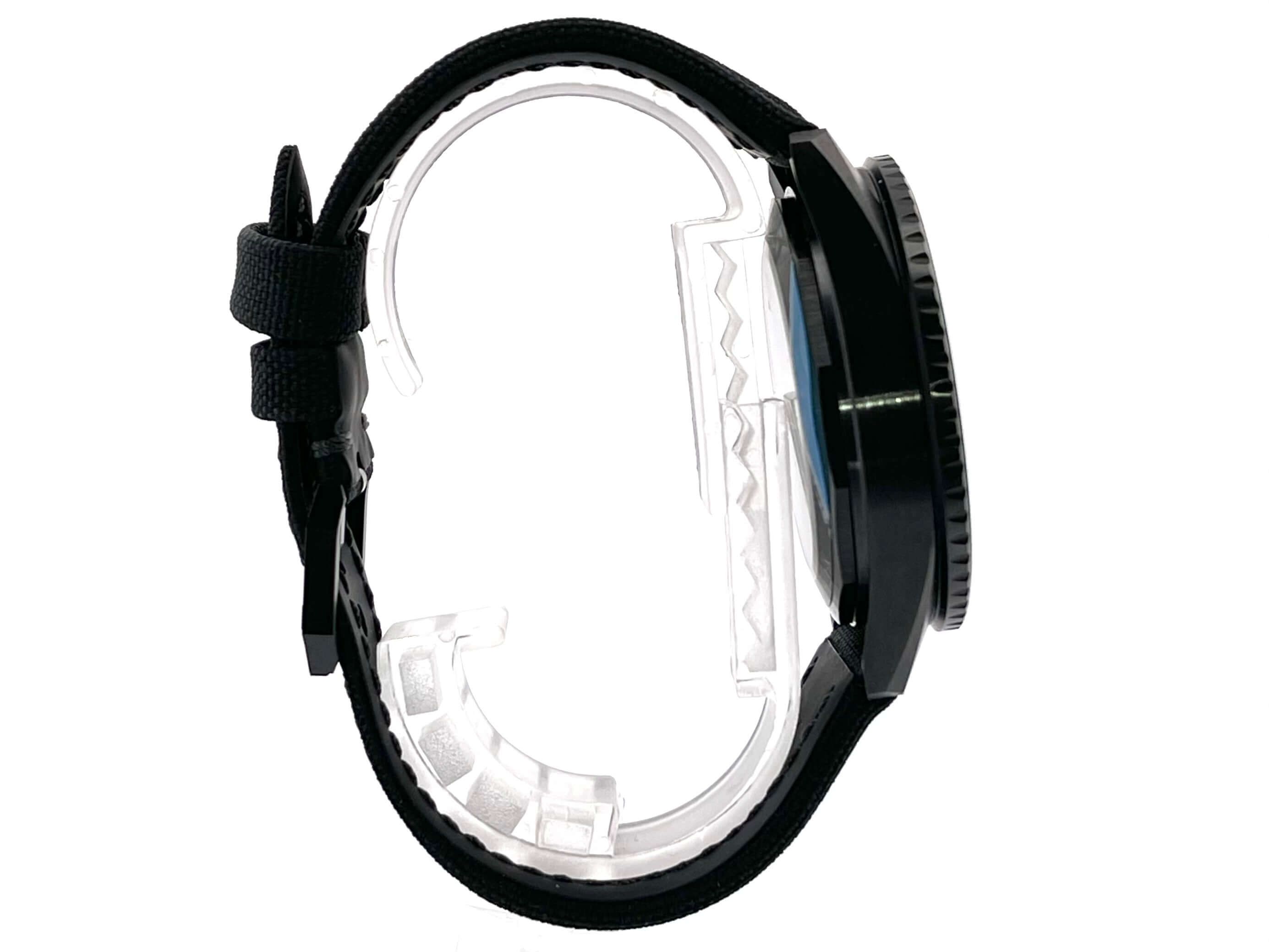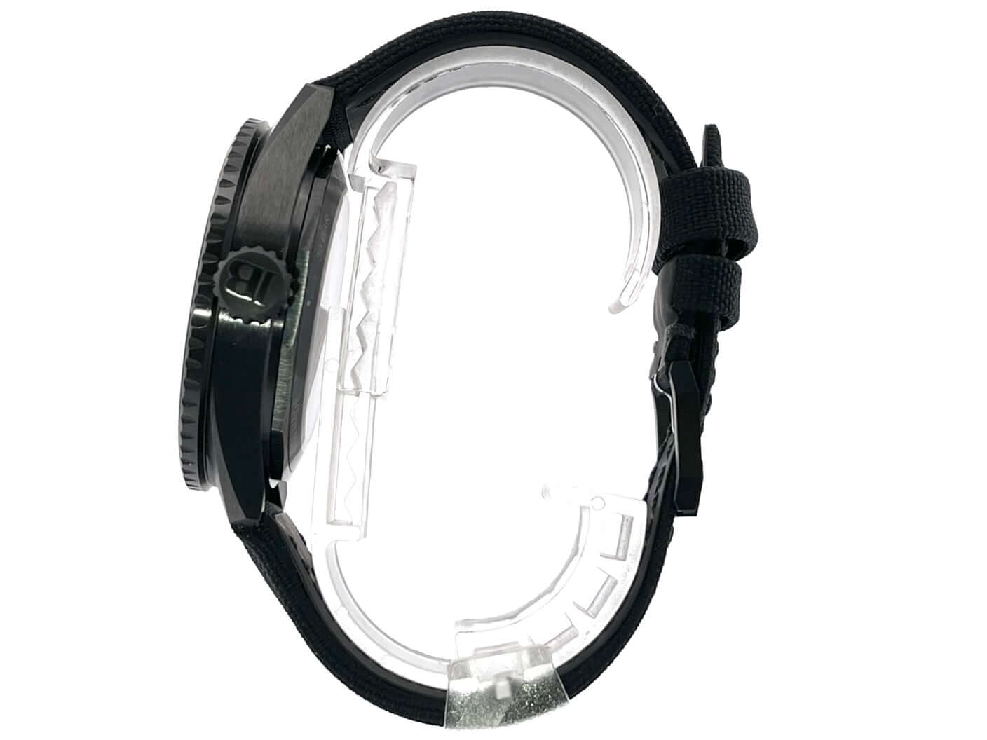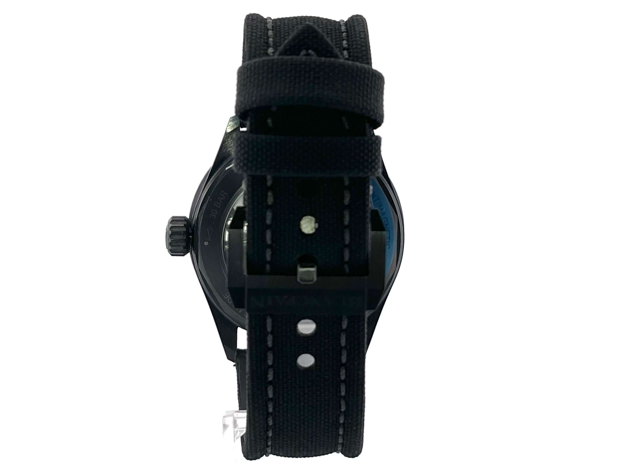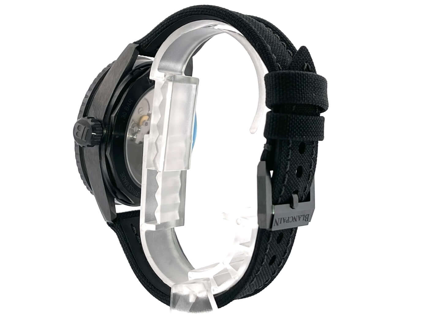 Gehäuse aus schwarzer Keramik satiniert, Gehäusedurchmesser 43,6 mm, Keramik Lünette, drehbar mit Sperre, schwarzes Segeltuchband mit Dornschließe, schwarzes Zifferblatt mit aufgesetzten Leuchtpunkten, Leuchtzeiger, Sekundenzeiger mit Leuchtspitze, Zentralsekunde, Uhrwerk Automatik, Kaliber Blancpain 1315, 35 Steine, Gangreserve ca. 120 Stunden, Datum, Saphirglas, verschraubte Krone mit Flankenschutz, Keramikboden verschraubt mit Sichtfenster, Wasserdicht bis zu 30 bar.
