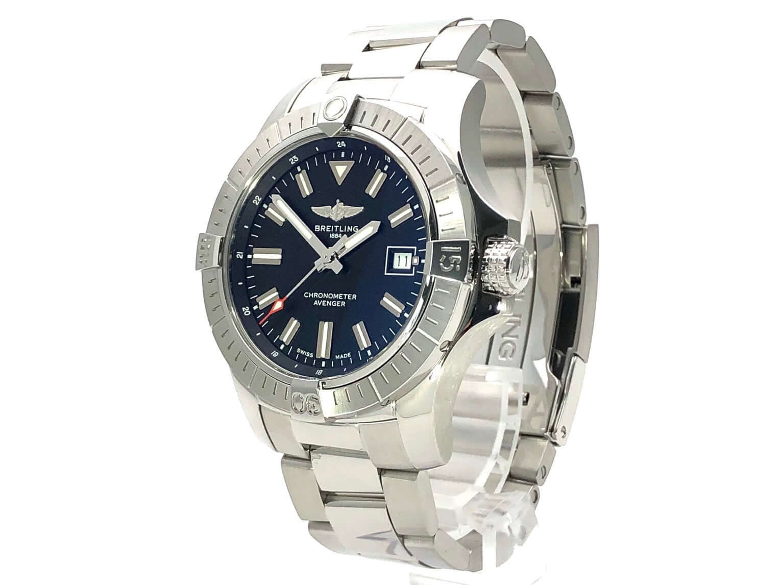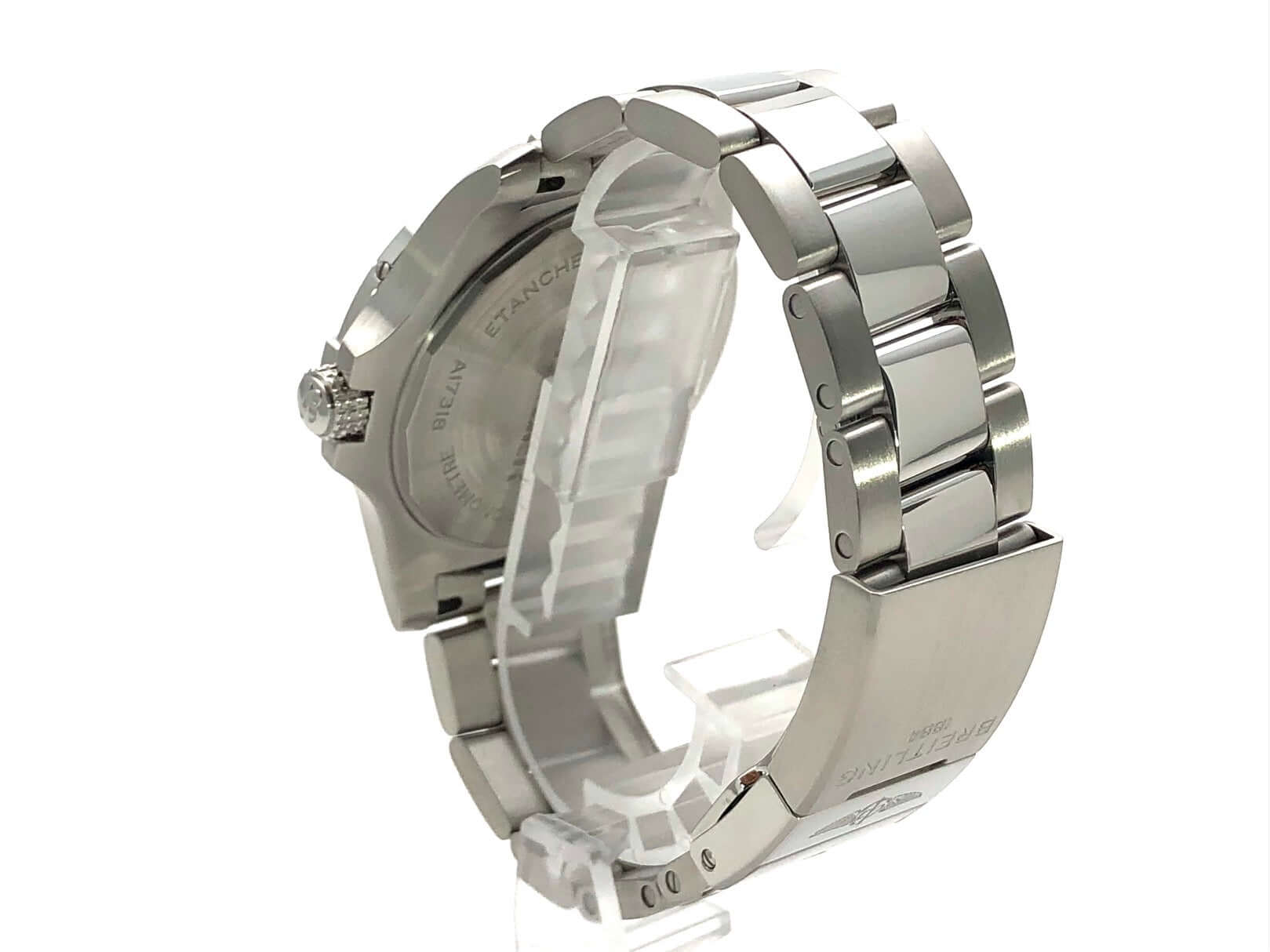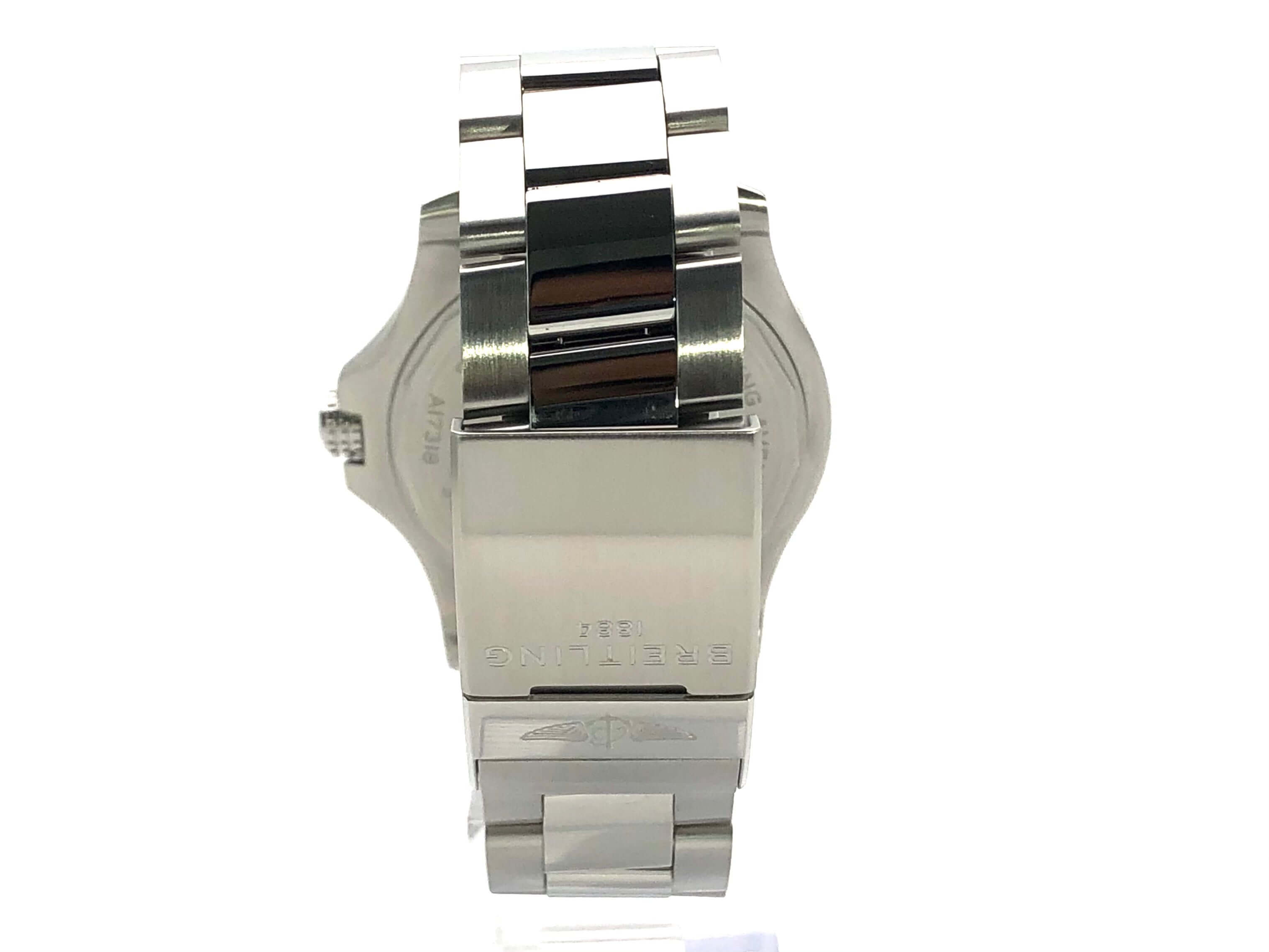 Gehäuse aus Edelstahl poliert und satiniert, Gehäusedurchmesser 43 mm, Gehäusehöhe 12,28 mm, Edelstahl Lünette mit 60 Minuten Skala, einseitig drehbar mit Sperre, Edelstahlband poliert und satiniert mit Faltschließe, schwarzes Zifferblatt mit aufgesetzten Leuchtindizes, Leuchtzeiger, Sekundenzeiger mit Leuchtspitze, Automatik, Kaliber Breitling 17, 25 Steine, 28.800 A/h, Gangreserve ca. 38 Stunden, Datum, Chronometer, Zentralsekunde, Saphirglas beidseitig entspiegelt, Krone verschraubbar mit Flankenschutz, Edelstahlboden verschraubt, Wasserdicht bis zu 30 bar.