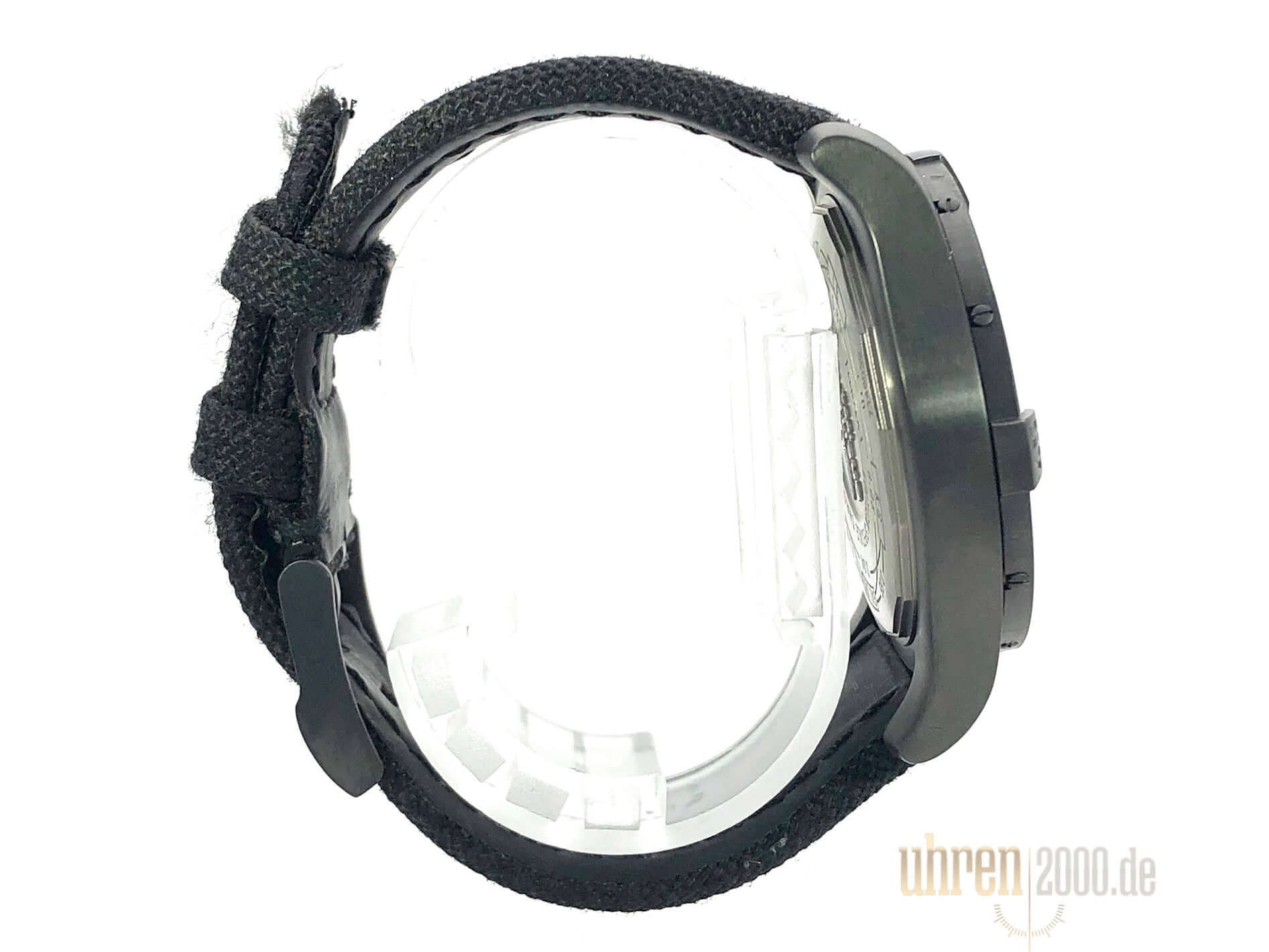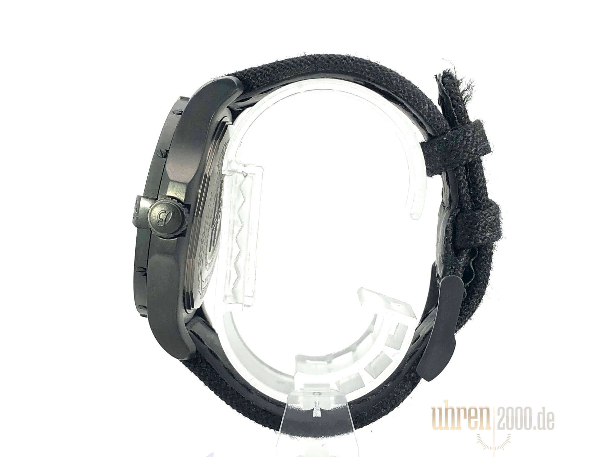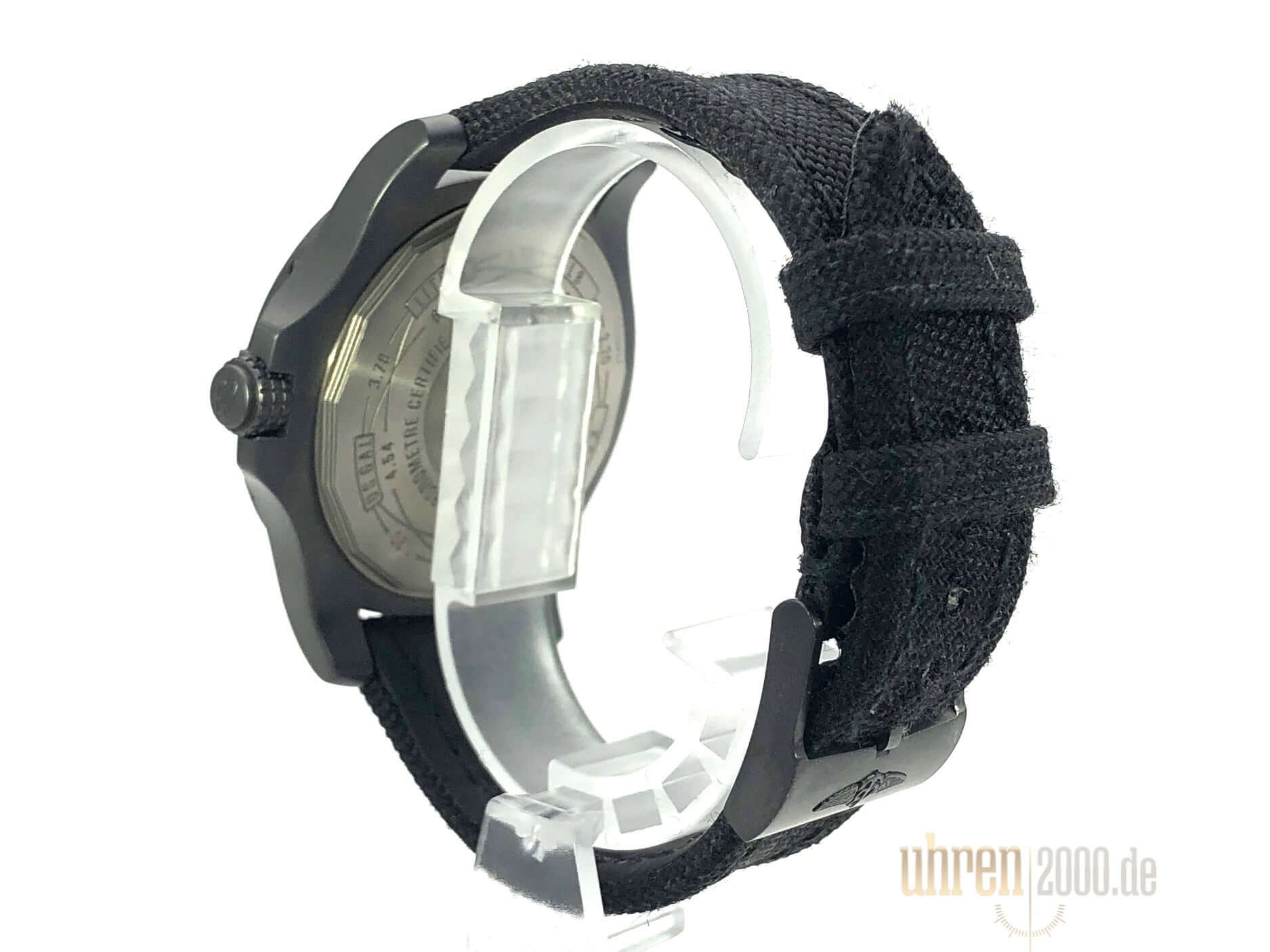 Gehäuse aus Titan schwarz beschichtet, Gehäusedurchmesser 44 mm, Gehäusehöhe 12,70 mm, Titan Lünette mit 60 Minuten Skala, einseitig drehbar mit Sperre, Military Textil Armband mit Dornschließe, schwarzes Zifferblatt mit aufgesetzten Leuchtindexen, Leuchtzeiger, Sekundenzeiger mit Leuchtspitze, Zentralsekunde, Automatik Uhrwerk, Chronometer mit Zeugnis, Kaliber Breitling 17, 25 Steine, 28.800 A/h, Gangreserve ca. 40 Stunden, Datum, Saphirglas bombiert und beidseitig entspiegelt, Krone verschraubbar mit Flankenschutz, 2 Dichtungen, Titan Boden verschraubt, Wasserdicht bis zu 20 bar.