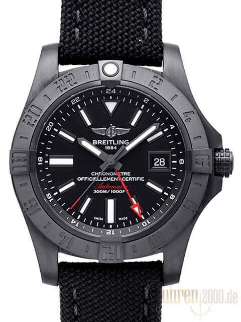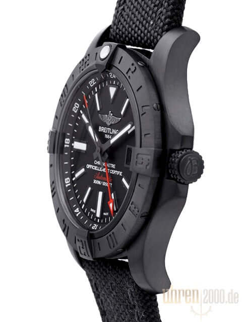 Breitling Avenger II GMT Black Steel Ref. M3239010.BF04.109W.M20BASA.1 Military Textilband mit Dornschließe