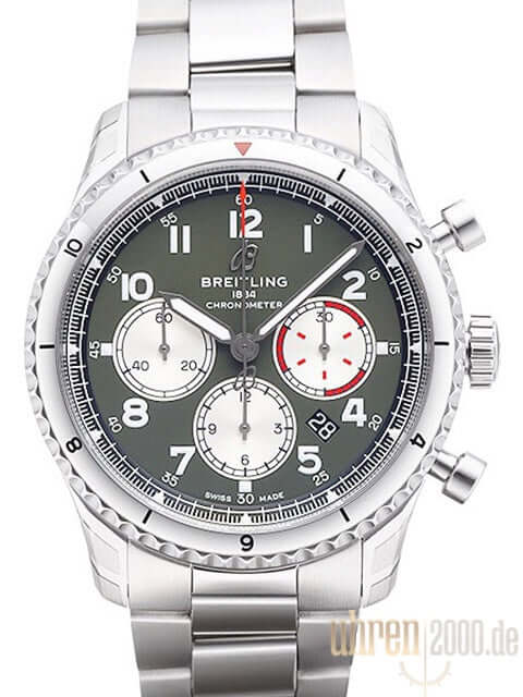 Gehäuse aus Edelstahl poliert und satiniert, Gehäusedurchmesser 43 mm, Gehäusehöhe 13,97 mm, Edelstahl Lünette gerädelt, Edelstahlband poliert mit Sicherheitsfaltschließe, grünes Zifferblatt mit aufgesetzten arabischen Leuchtziffern, silberfarbene Totalisatoren, Leuchtzeiger, Automatikwerk, Manufakturkaliber Breitling 01 mit 47 Steine, 28.800 A/h, Gangreserve ca. 70 Stunden, Datumsanzeige, Chronometer, bombiertes Saphirglas doppelseitig entspiegelt, Edelstahlboden verschraubt, graviert mit Sichtfenster, Wasserdicht bis zu 10 bar.