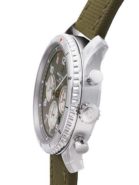 Gehäuse aus Edelstahl poliert und satiniert, Gehäusedurchmesser 43 mm, Gehäusehöhe 13,97 mm, Edelstahl Lünette gerädelt, grünes Militärarmband mit Dornschließe, grünes Zifferblatt mit aufgesetzten arabischen Leuchtziffern, silberfarbene Totalisatoren, Leuchtzeiger, Automatikwerk, Manufakturkaliber Breitling 01 mit 47 Steine, 28.800 A/h, Gangreserve ca. 70 Stunden, Datumsanzeige, Chronometer, bombiertes Saphirglas doppelseitig entspiegelt, Edelstahlboden verschraubt, graviert mit Sichtfenster, Wasserdicht bis zu 10 bar.