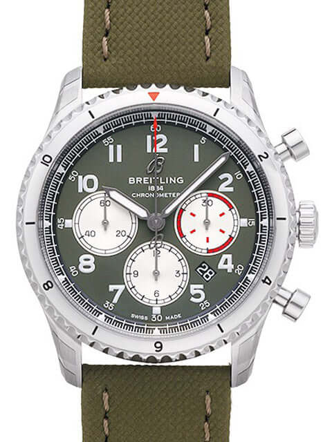 Breitling Aviator 8 B01 Chronograph 43 Curtiss Warhawk Ref. AB01192A1L1X1 grünes Militärarmband mit Dornschließe