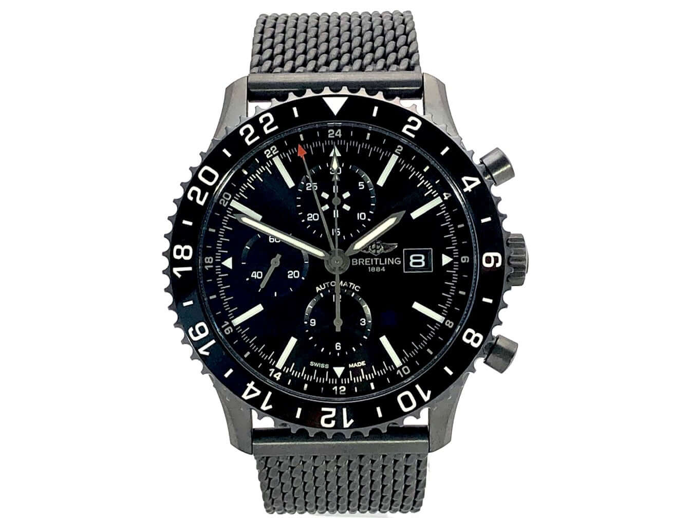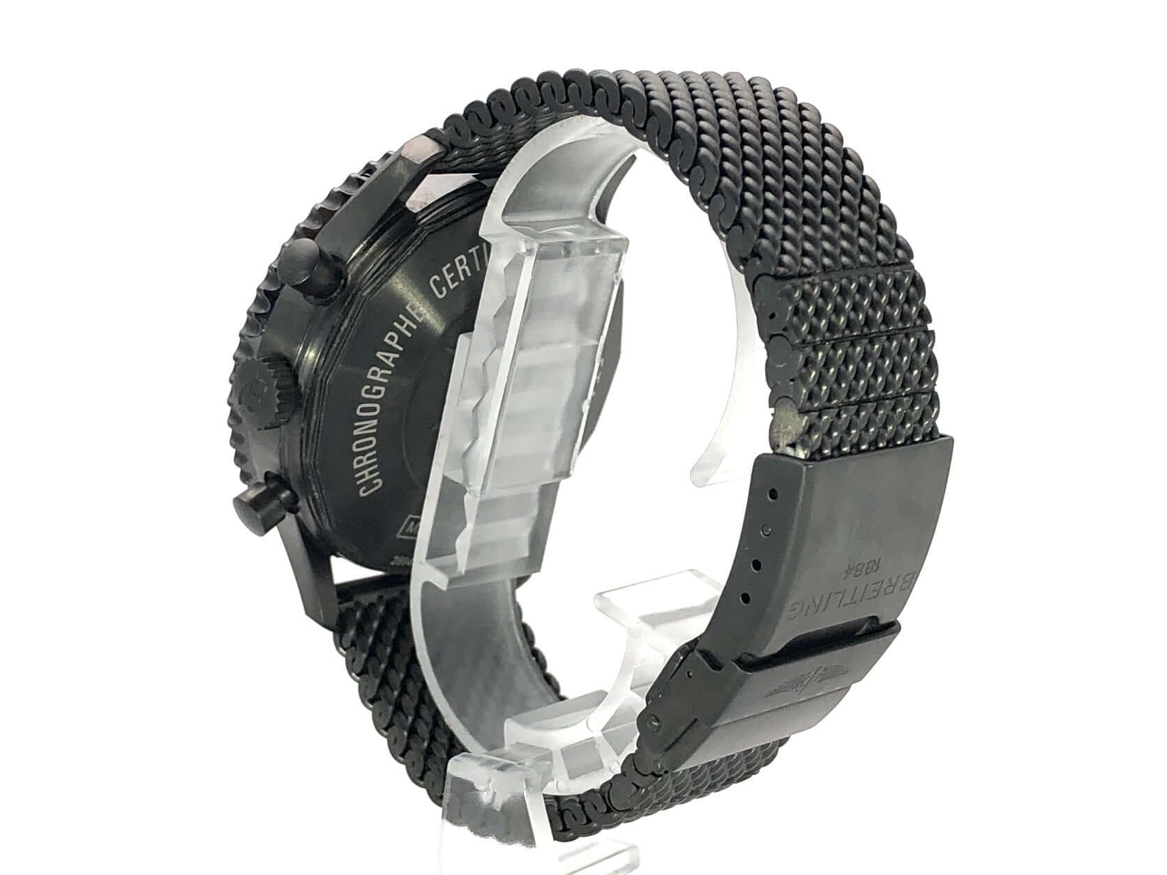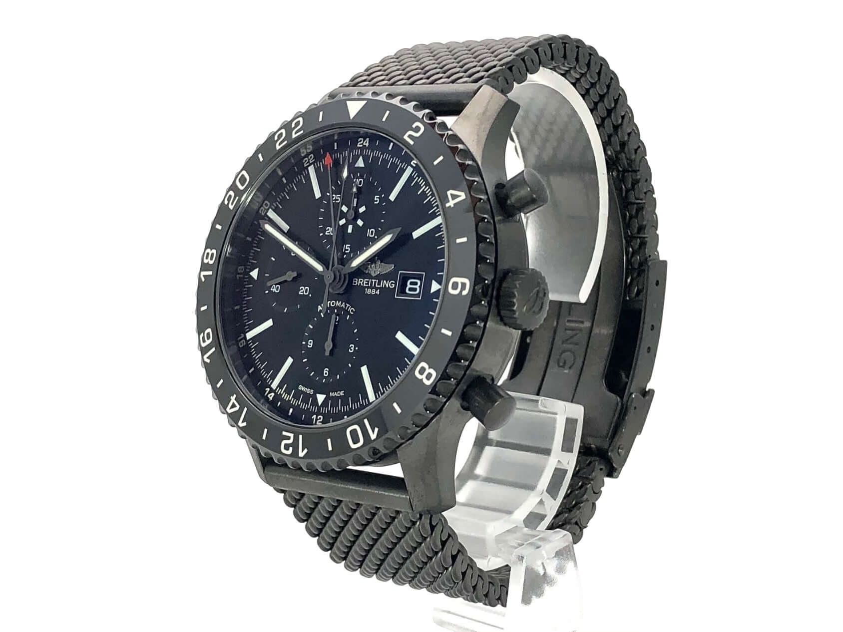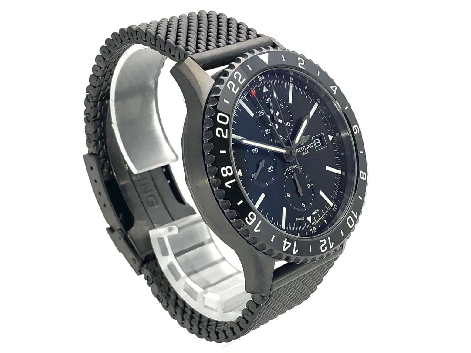 Gehäuse aus Edelstahl schwarz beschichtet, Gehäusedurchmesser 46 mm, Gehäusehöhe 15,95 mm, Edelstahl Lünette schwarz beschichtet, gerädelt mit schwarzer Keramik Einlage, beidseitig drehbar, Ocean Classic Edelstahlband schwarz beschichtet mit Faltschließe, schwarzes Zifferblatt mit aufgesetzten Leuchtindizes, Leuchtzeiger, Automatikwerk, Kaliber Breitling 24, 25 Steine, 28.800 A/h, Gangreserve ca. 42 Stunden, Datumsanzeige bei 3 Uhr, 24 Stunden Anzeige (zweite Zeitzone), Chronograph, Chronometer mit Zeugnis, Saphirglas doppelseitig entspiegelt, Edelstahlboden verschraubt, graviert und schwarz beschichtet, Wasserdicht bis zu 10 bar.