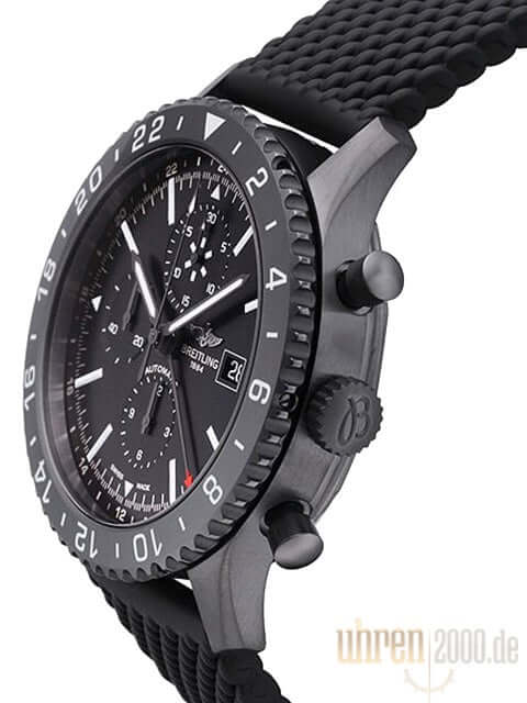 Gehäuse aus Edelstahl schwarz beschichtet, Gehäusedurchmesser 46 mm, Gehäusehöhe 15,95 mm, Edelstahl Lünette schwarz beschichtet, gerädelt mit schwarzer Keramik Einlage, beidseitig drehbar, schwarzes Aero Classic Kautschukband mit Faltschließe, schwarzes Zifferblatt mit aufgesetzten Leuchtindexen, Leuchtzeiger, Automatikwerk, Kaliber Breitling 24, 25 Steine, 28.800 A/h, Gangreserve ca. 42 Stunden, Datumsanzeige bei 3 Uhr, Chronograph, Chronometer mit Zeugnis, 24 Stunden Anzeige (zweite Zeitzone), Saphirglas doppelseitig entspiegelt, Edelstahlboden verschraubt, graviert und schwarz beschichtet, Wasserdicht bis zu 10 bar.