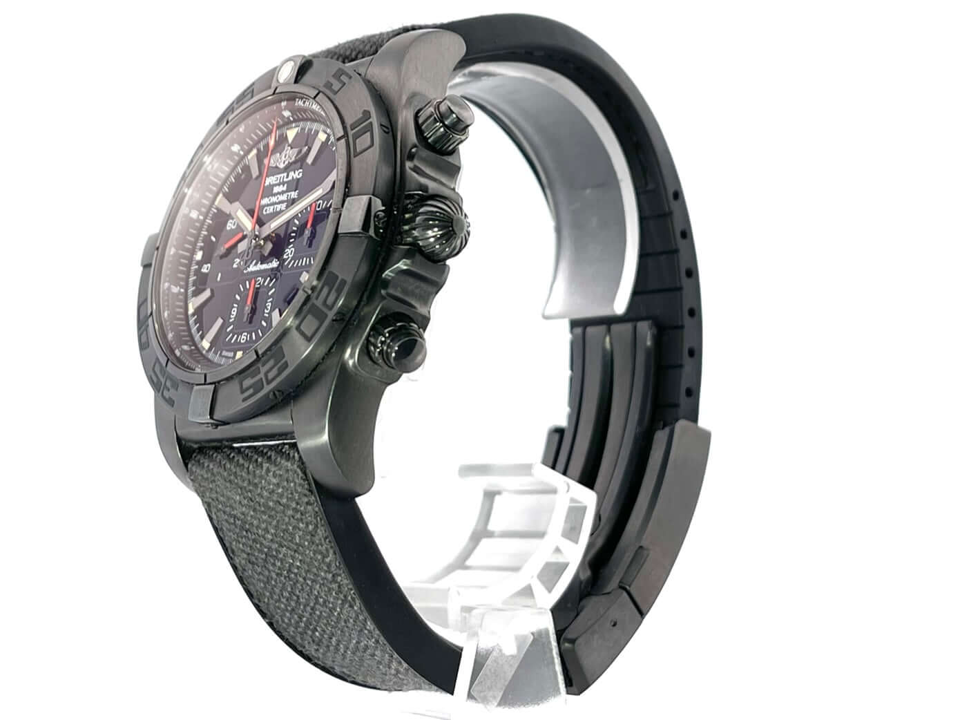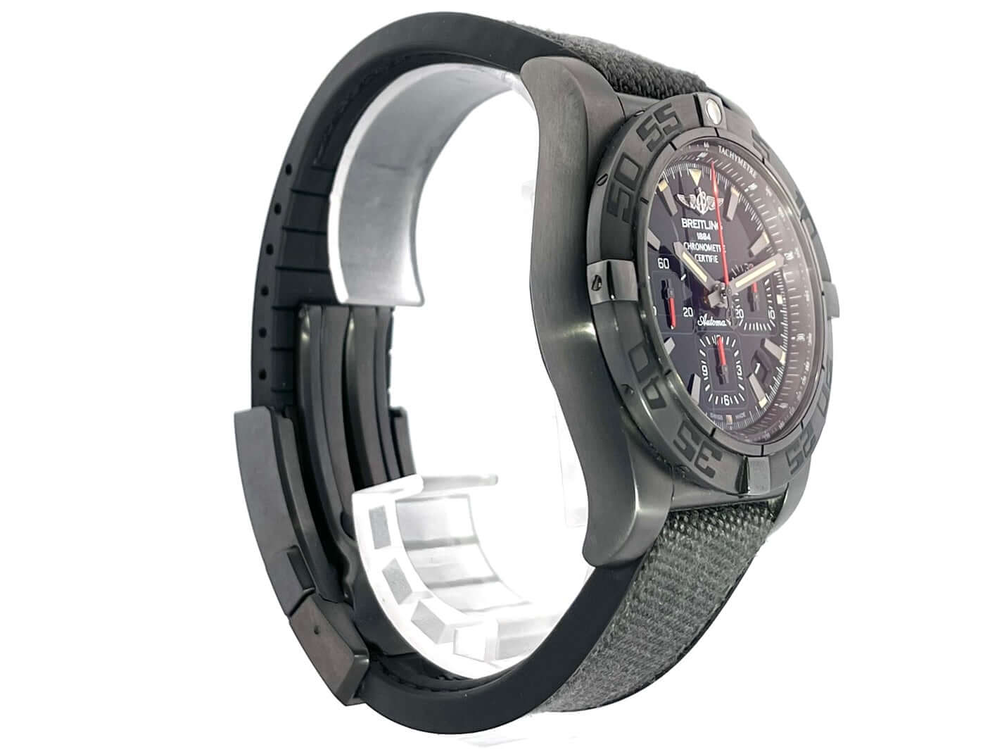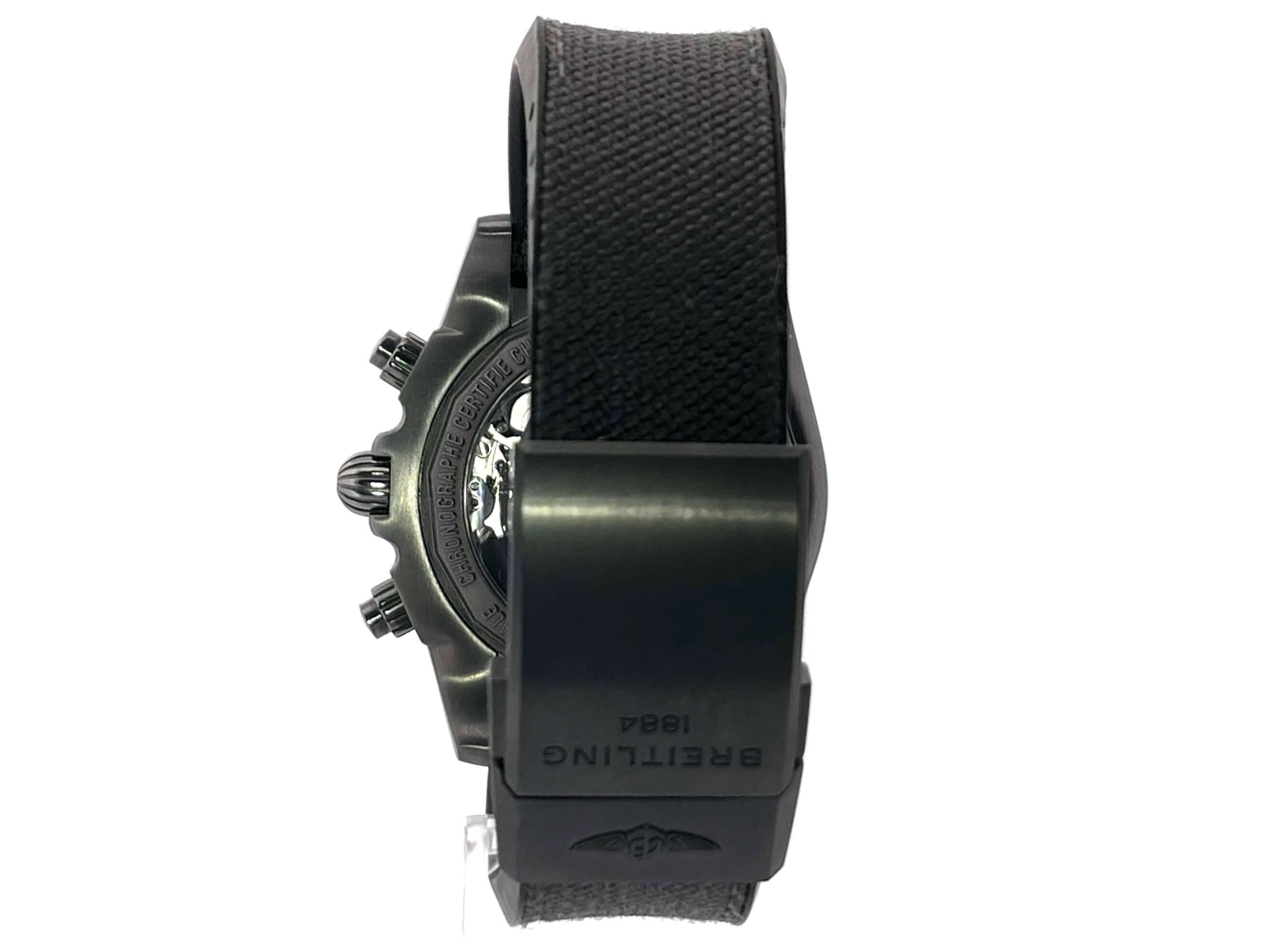 Gehäuse aus Edelstahl schwarz beschichtet, Gehäusedurchmesser 44 mm, Gehäusehöhe 16,95 mm, Edelstahl Lünette schwarz beschichtet einseitig drehbar, schwarzes Military-Kautschuk Armband mit Faltschließe, schwarzes Zifferblatt mit aufgesetzten Leuchtziffern und Leuchtzeiger, Automatikwerk, Chronograph, Chronometer, Manufakturkaliber Breitling 01 mit 47 Steine, 28.800 A/h, Gangreserve ca. 70 Stunden, Datumsanzeige, Saphirglas doppelseitig entspiegelt, schwarz beschichteter Edelstahlboden mit Sichtfenster, Wasserdicht bis zu 20 bar.