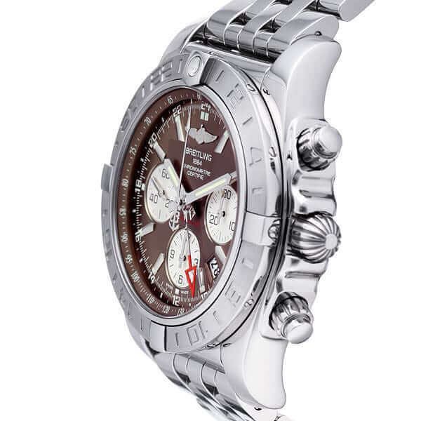 Gehäuse aus Edelstahl poliert und satiniert, Gehäusedurchmesser 44 mm, Gehäusehöhe 16,90 mm, Edelstahl Lünette in 2 Richtungen drehbar, Edelstahl Armband poliert mit Sicherheitsfaltschließe, Zifferblatt Metallica-Braun mit aufgesetzten Leuchtziffern und Leuchtzeiger, Automatikwerk Chronograph, Chronometer, GMT/Zweite Zeitzone, Manufakturkaliber Breitling 04 mit 47 Steine, 28.800 A/h, Gangreserve ca. 70 Stunden, Datumsanzeige, Saphirglas doppelseitig entspiegelt, Edelstahlboden verschraubt und graviert, Wasserdicht bis zu 20 bar.