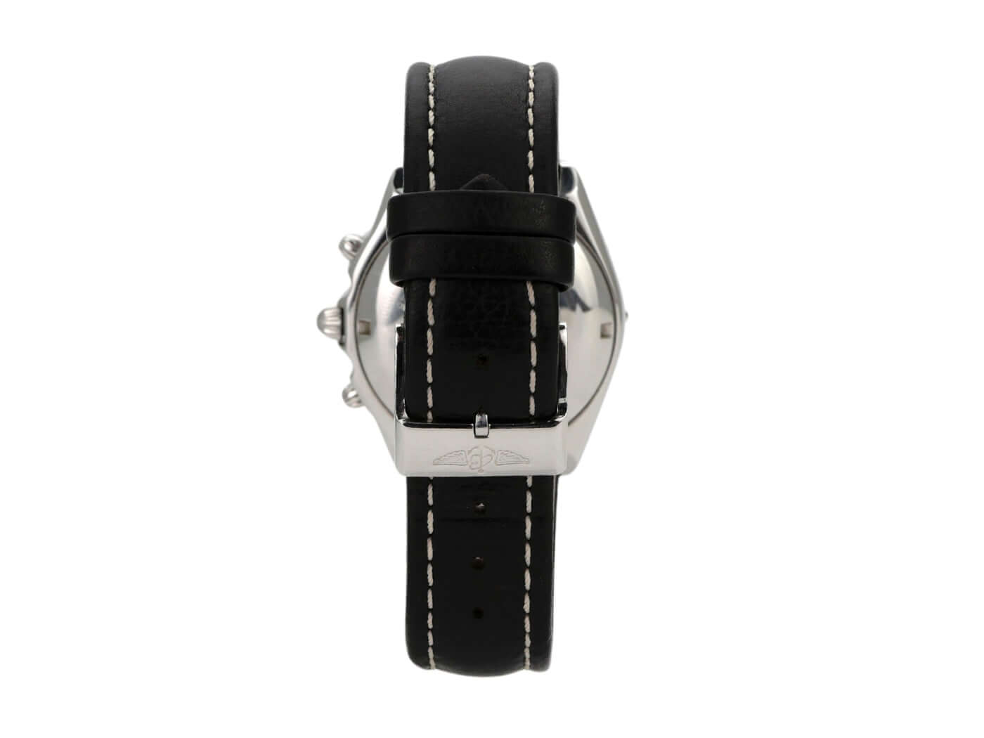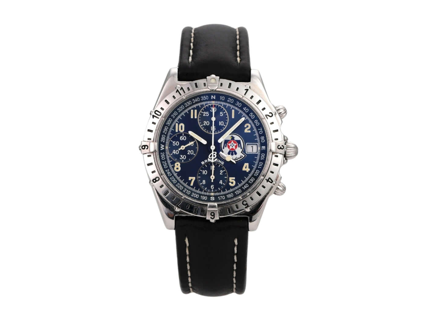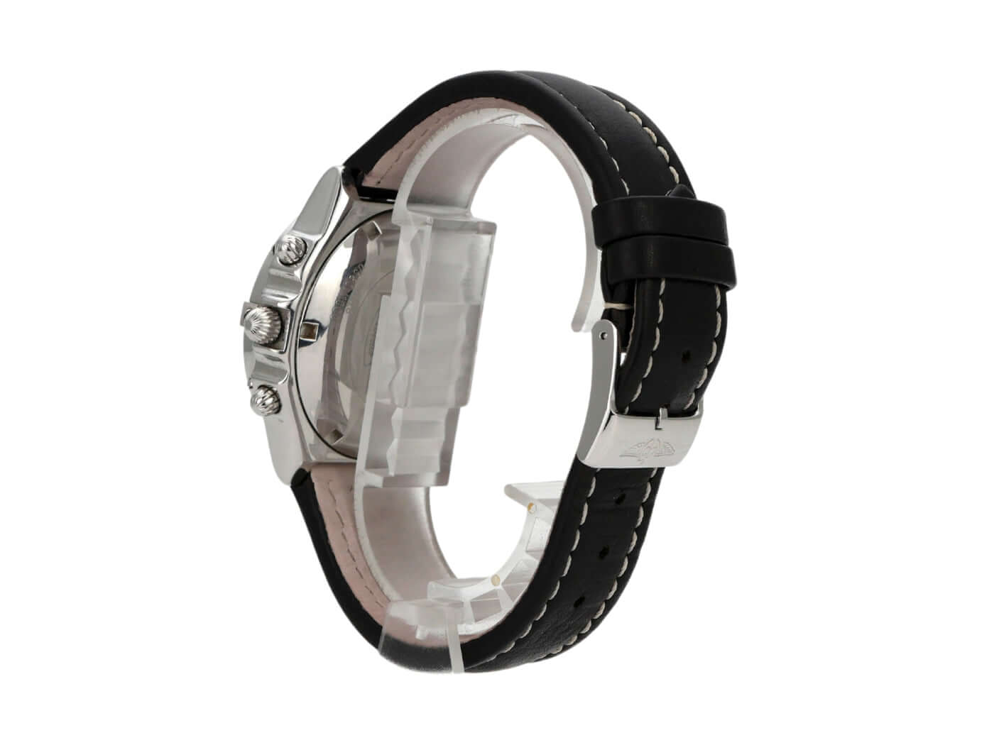 Gehäuse aus Edelstahl satiniert, Gehäusedurchmesser 40,5 mm, Gehäusehöhe 13,9 mm, Edelstahl Lünette satiniert, Lederband mit Dornschließe, blaues Zifferblatt mit Leuchtindizes, Leuchtzeiger, Automatikwerk, Breitling 20, 28.800 A/h, Gangreserve ca. 42 Stunden, Datumsanzeige, Chronometer, Chronograph, Saphirglas, Edelstahlboden verschraubt und graviert, wasserdicht bis zu 10 bar, limitiert auf 1000 Stück.