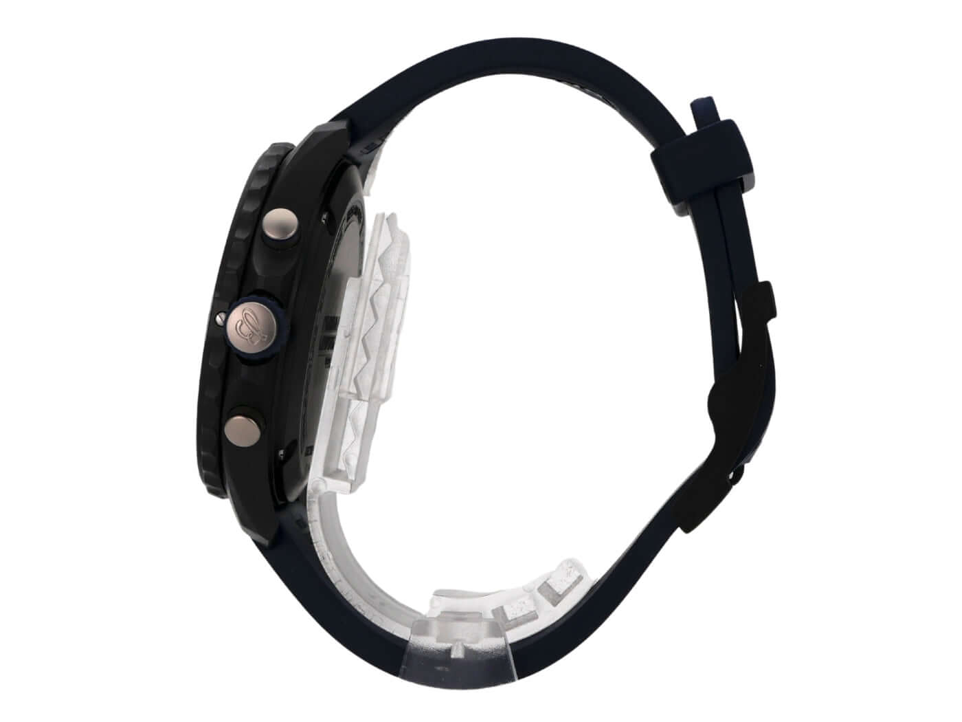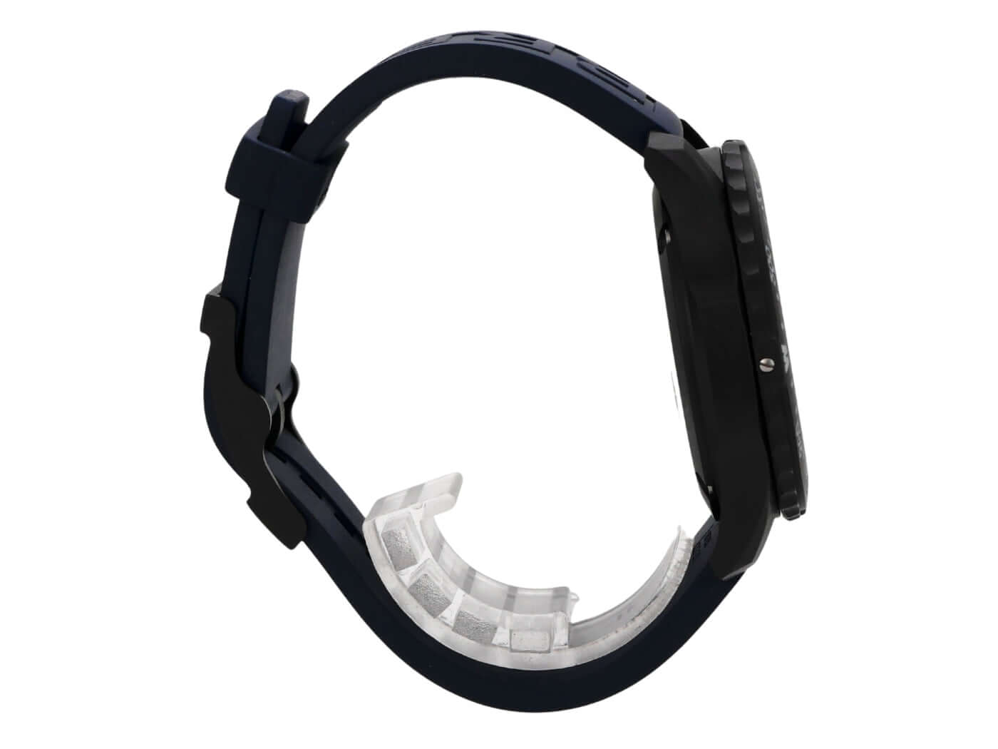 Gehäuse aus Breitlight, Gehäusedurchmesser 44 mm, Gehäusehöhe 12,5 mm, Breitlight Lünette beidseitig drehbar, blaues Kautschukband mit Dornschließe, schwarzes Zifferblatt mit aufgesetzten Leuchtziffern und Leuchtzeiger, Quarzwerk, Breitling 82, Datumsanzeige, Chronograph, Chronometer, Saphirglas doppelseitig entspiegelt, Breitlight-Boden, wasserdicht bis zu 10 bar.