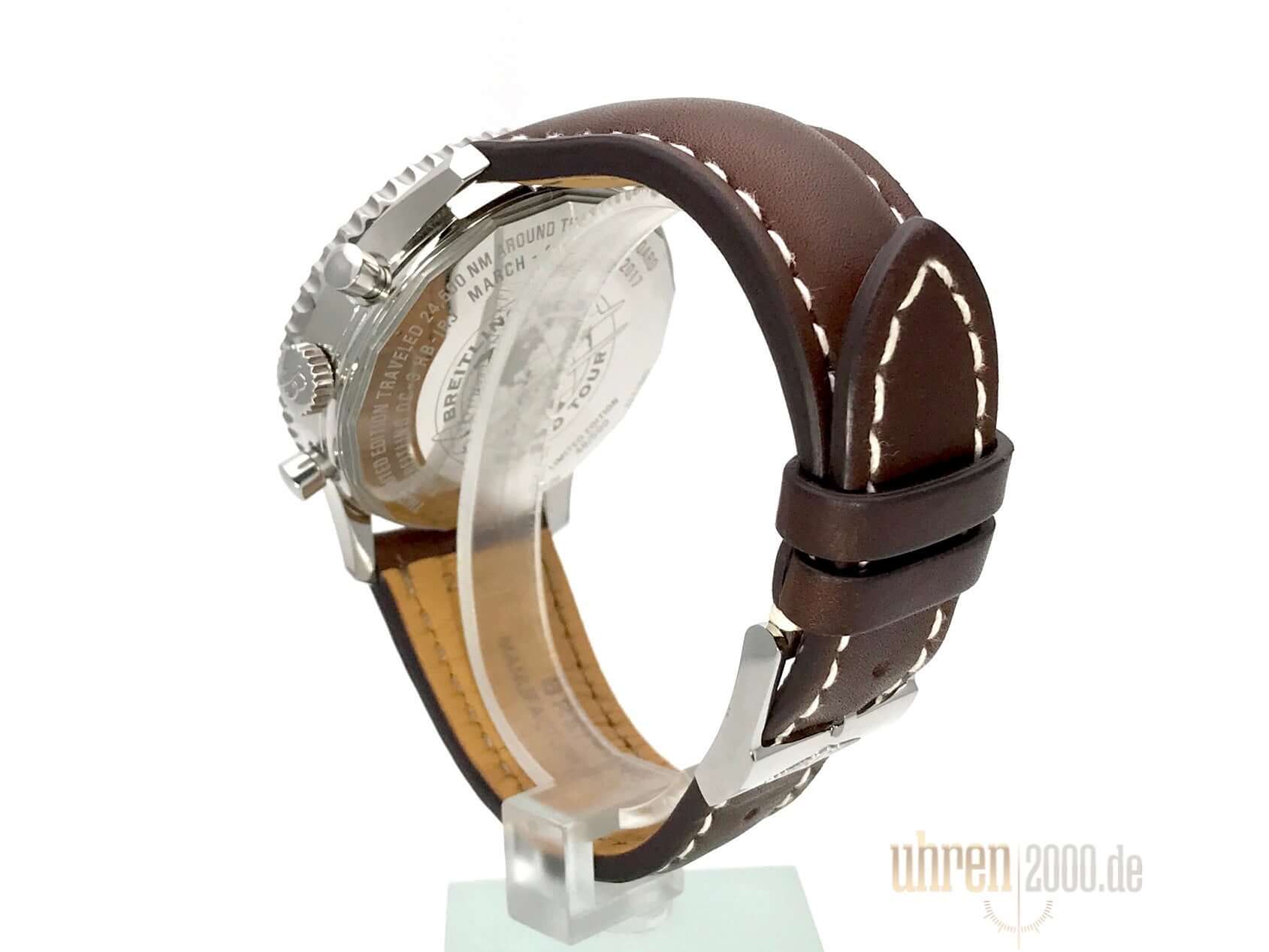 Gehäuse aus Edelstahl poliert und satiniert, Gehäusedurchmesser 46 mm, Gehäusehöhe 14,5 mm, Edelstahl Lünette gerädelt, Rechenschieber drehbar, braunes Lederarmband mit Dornschließe, schwarzes Zifferblatt mit aufgesetzten Index, Leuchtpunkten, Leuchtzeiger, Automatikwerk, Chronograph, Manufakturkaliber Breitling 01 mit 47 Steine, 28.800 A/h, Gangreserve ca. 70 Stunden, Datumsanzeige, bombiertes Saphirglas doppelseitig entspiegelt, Edelstahlboden verschraubt und graviert, Wasserdicht bis zu 3 bar, Limitiert auf 500 Stück.