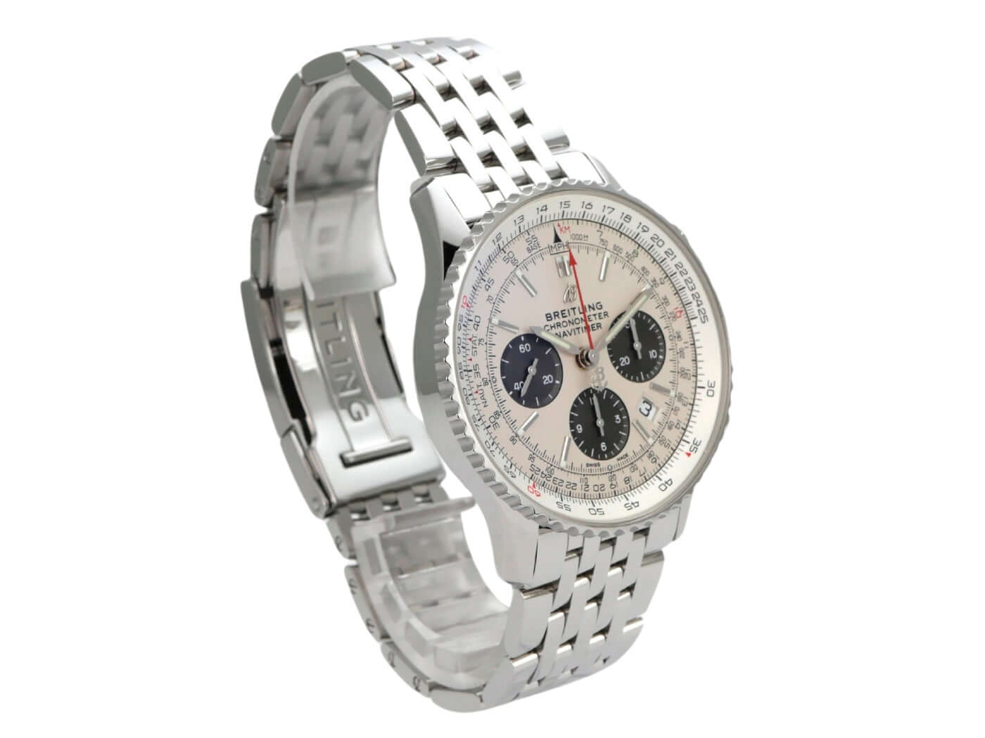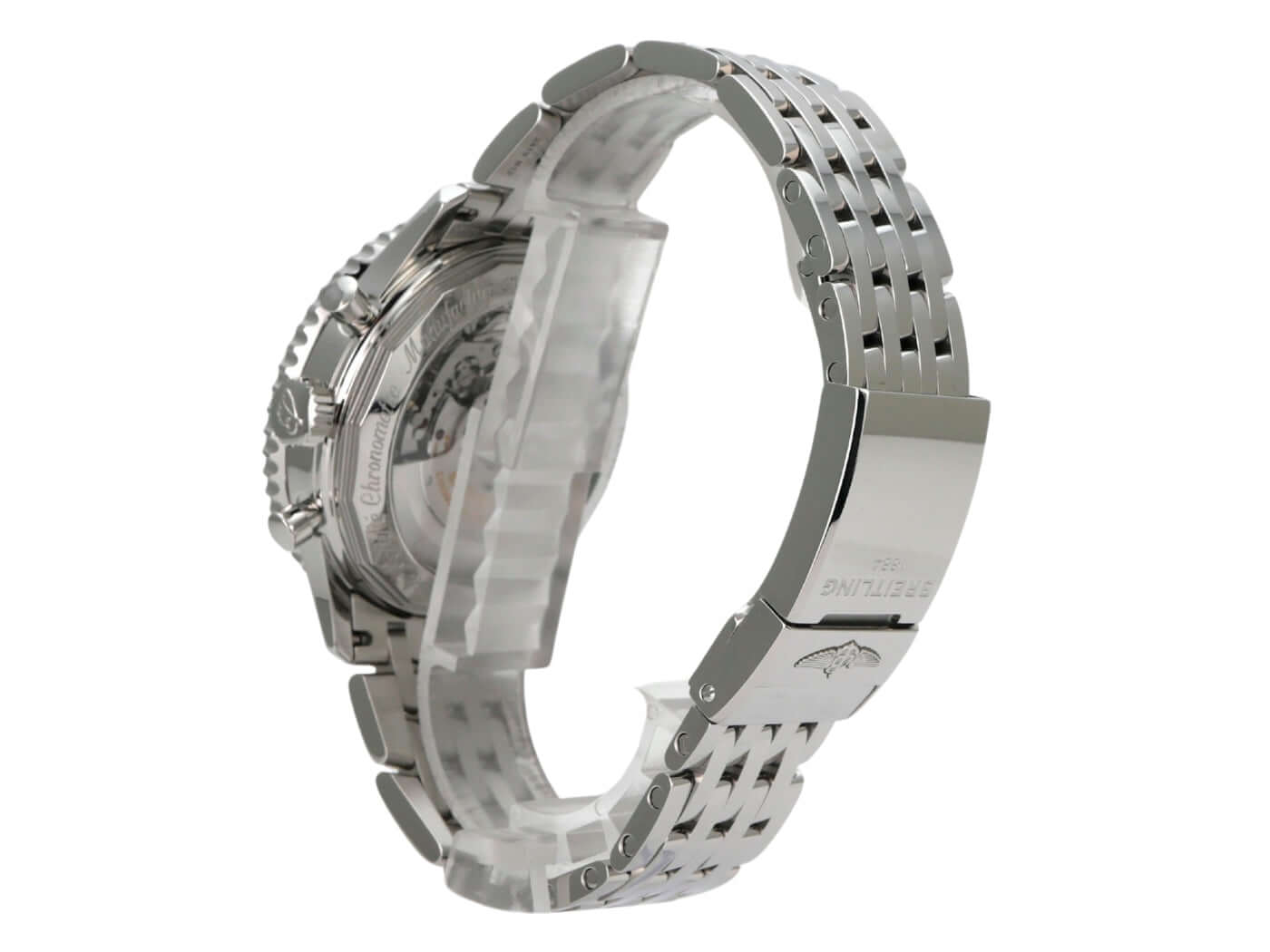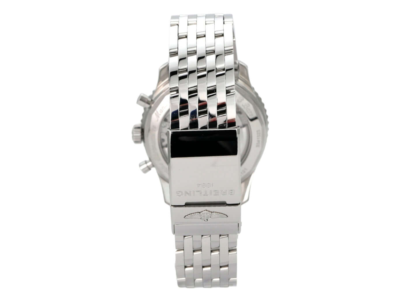 Gehäuse aus Edelstahl poliert und satiniert, Gehäusedurchmesser 43 mm, Gehäusehöhe 14,22 mm, Edelstahl Lünette gerädelt, Rechenschieber drehbar, Edelstahlband mit Faltschließe, silberfarbenes Zifferblatt mit aufgesetzten Indizes, schwarze Totalisatoren, Leuchtzeiger, Automatikwerk, Manufakturkaliber Breitling 01 mit 47 Steine, 28.800 A/h, Gangreserve ca. 70 Stunden, Datumsanzeige, Chronometer, bombiertes Saphirglas doppelseitig entspiegelt, Edelstahlboden verschraubt, graviert mit Sichtfenster, wasserdicht bis zu 3 bar.