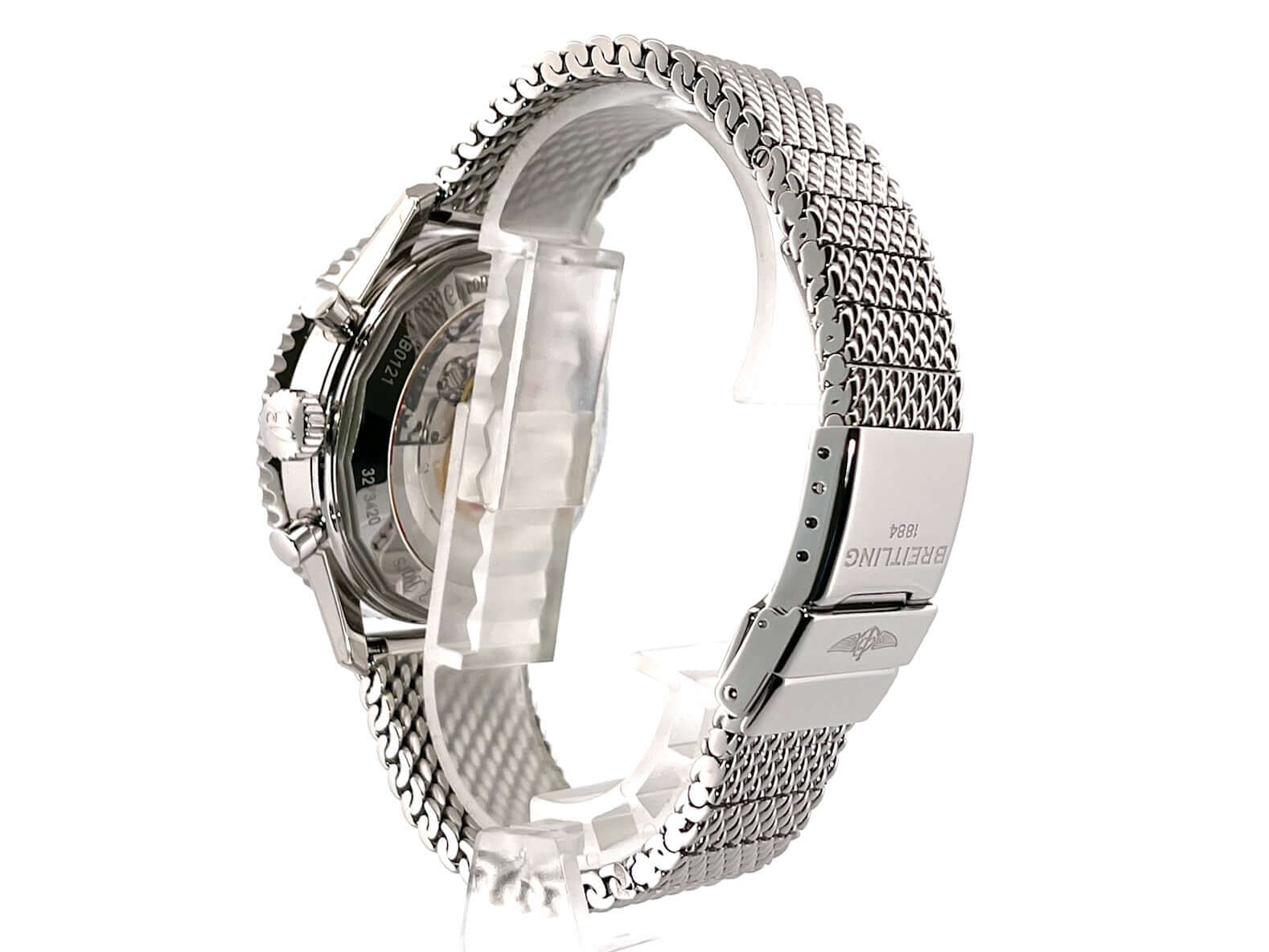 Gehäuse aus Edelstahl poliert und satiniert, Gehäusedurchmesser 43 mm, Gehäusehöhe 14,25 mm, Edelstahl Lünette gerädelt, Rechenschieber drehbar, Ocean Classic Edelstahlband mit Faltschließe, silberfarbenes Zifferblatt mit aufgesetzten Indizes, graue Totalisatoren, rote Leuchtzeiger, Automatikwerk, Manufakturkaliber Breitling 01 mit 47 Steine, 28.800 A/h, Gangreserve ca. 70 Stunden, Chronograph, Datumsanzeige, Chronometer, bombiertes Saphirglas doppelseitig entspiegelt, Edelstahlboden mit Saphirglas und aufgedrucktem TWA-Logo, Wasserdicht bis zu 3 bar.