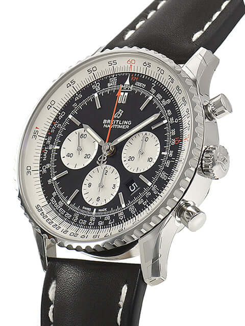 Gehäuse aus Edelstahl poliert und satiniert, Gehäusedurchmesser 46 mm, Gehäusehöhe 14,51 mm, Edelstahl Lünette gerädelt, Rechenschieber drehbar, schwarzes Lederband mit Faltschließe, schwarzes Zifferblatt mit aufgesetzten Indizes, silberfarbene Totalisatoren, Leuchtzeiger, Automatikwerk, Manufakturkaliber Breitling 01 mit 47 Steine, 28.800 A/h, Gangreserve ca. 70 Stunden, Datumsanzeige, Chronometer, bombiertes Saphirglas doppelseitig entspiegelt, Edelstahlboden verschraubt, graviert mit Sichtfenster, Wasserdicht bis zu 3 bar.