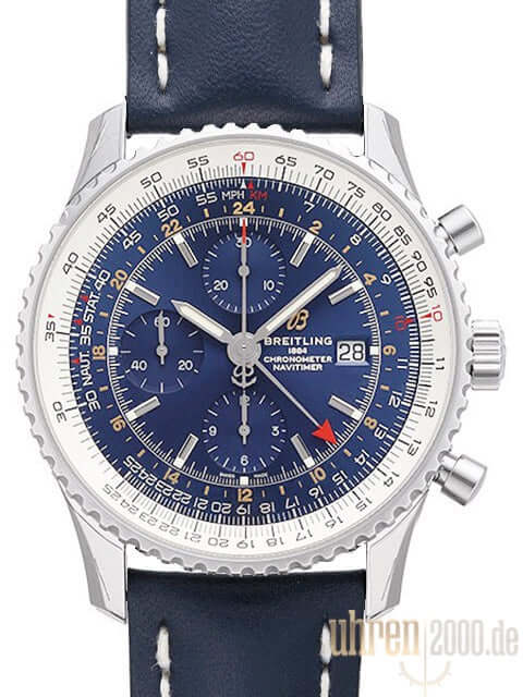 Breitling Navitimer 1 Chronograph GMT 46 Ref. A24322121C2X2 blaues Lederband mit Faltschließe