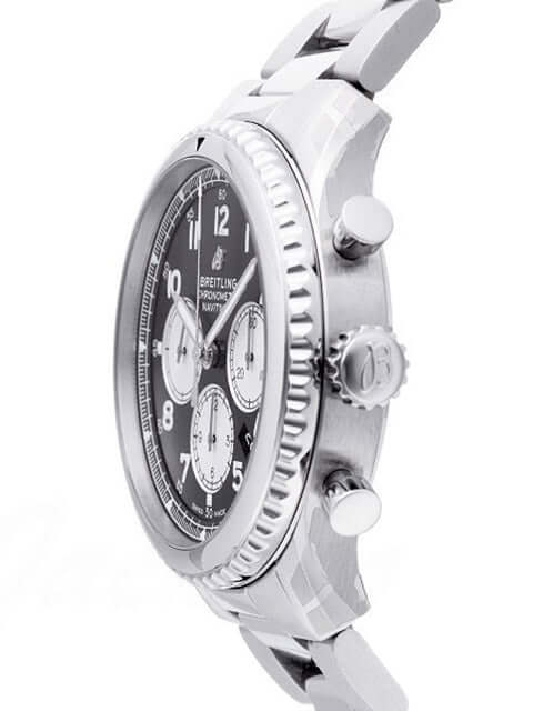 Gehäuse aus Edelstahl poliert und satiniert, Gehäusedurchmesser 43 mm, Gehäusehöhe 13,97 mm, Edelstahl Lünette gerädelt, Edelstahlband poliert mit Sicherheitsfaltschließe, schwarzes Zifferblatt mit aufgesetzten arabischen Ziffern, silberfarbene Totalisatoren, Leuchtzeiger, Automatikwerk, Manufakturkaliber Breitling 01 mit 47 Steine, 28.800 A/h, Gangreserve ca. 70 Stunden, Datumsanzeige, Chronometer, bombiertes Saphirglas doppelseitig entspiegelt, Edelstahlboden verschraubt, graviert mit Sichtfenster, Wasserdicht bis zu 10 bar.