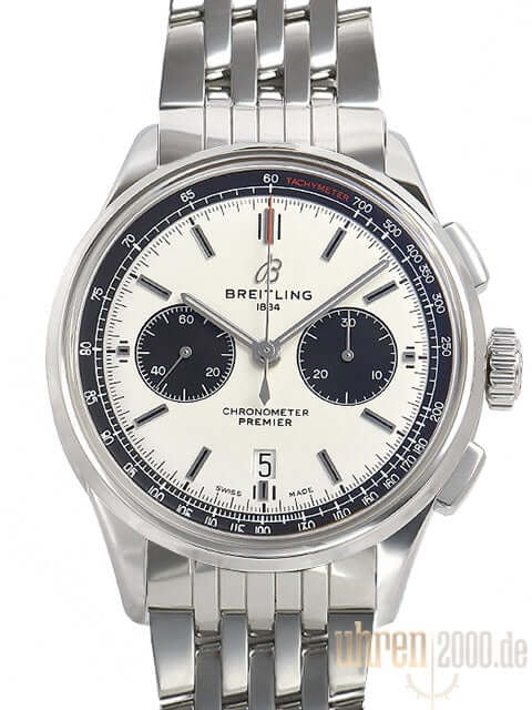 Gehäuse aus Edelstahl poliert und satiniert, Gehäusedurchmesser 42 mm, Gehäusehöhe 13,65 mm, polierte Edelstahl Lünette, Edelstahlband poliert mit Sicherheitsfaltschließe, silberfarbenes Zifferblatt mit aufgesetzten Leuchtindizes, schwarze Totalisatoren, Leuchtzeiger, Automatikwerk, Manufakturkaliber Breitling 01 mit 47 Steine, 28.800 A/h, Gangreserve ca. 70 Stunden, Chronograph, Datumsanzeige, Chronometer, bombiertes Saphirglas doppelseitig entspiegelt, Edelstahlboden verschraubt, graviert mit Sichtfenster, Wasserdicht bis zu 10 bar.