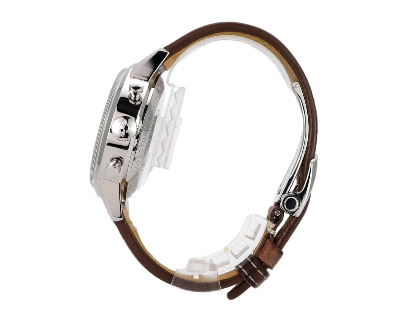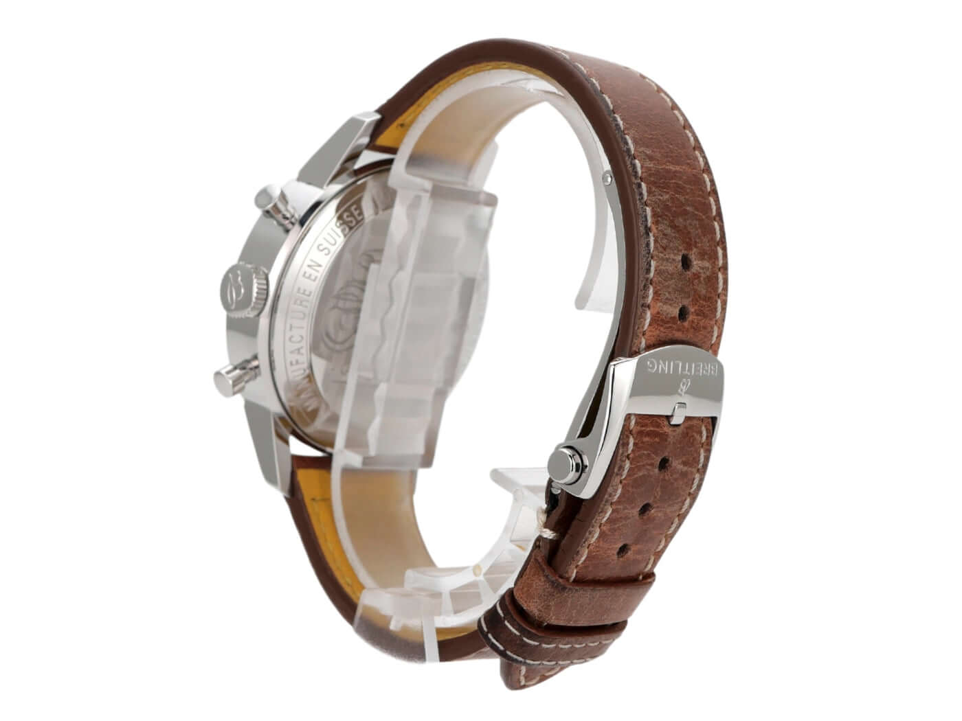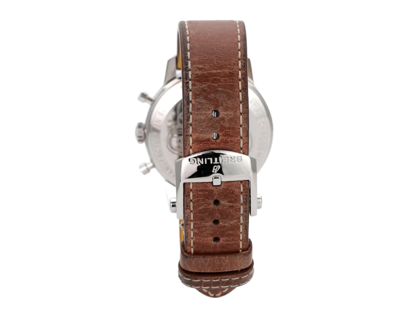Gehäuse aus Edelstahl poliert, Gehäusedurchmesser 41 mm, Gehäusehöhe 14,27 mm, polierte Edelstahl Lünette, braunes Lederband mit Faltschließe, weißes Zifferblatt mit aufgesetzten Indizes, blaue Totalisatoren, Leuchtzeiger, Automatikwerk, Breitling 23, Schwingung 28.800 A/h, Gangreserve für ca. 48 Stunden, Saphirglas doppelseitig entspiegelt, Boden aus Edelstahl verschraubt und graviert, wasserdicht bis zu 3 bar, limitiert auf 2000 Stück.