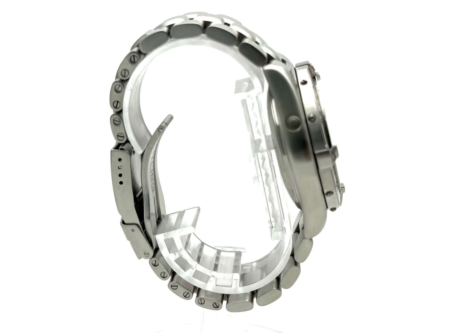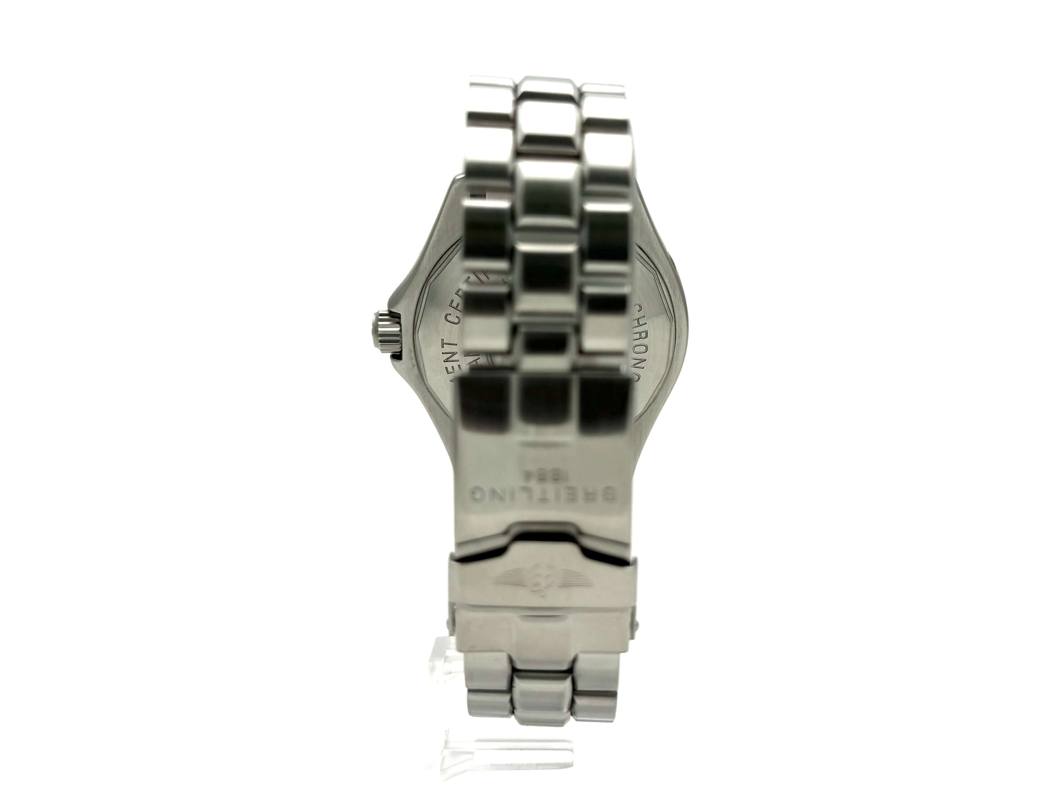 Gehäuse aus Edelstahl poliert, Gehäusedurchmesser 41,5 mm, Gehäusehöhe 15 mm, Lünette Edelstahl mit 60 Minuten Skala, einseitig drehbar mit Sperre, Edelstahlband poliert und satiniert mit Faltschließe, schwarzes Zifferblatt mit aufgesetzten Leuchtindizes und arabischen Ziffern, Leuchtzeiger, Sekundenzeiger mit Leuchtspitze, Automatik, Kaliber Breitling 17 mit 25 Steine, Schwingung 28.800 A/h, Gangreserve bis ca. 40 Stunden, Chronometer, Datum, Saphirglas, Krone verschraubbar mit Flankenschutz, Edelstahlboden verschraubt, Wasserdicht bis zu 150 bar.