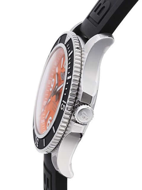 Gehäuse aus Edelstahl poliert und satiniert, Gehäusedurchmesser 42 mm, Gehäusehöhe 13,3 mm, Edelstahl Lünette mit schwarzer Einlage, 60 Minuten Skala, einseitig drehbar mit Sperre, orangefarbenes Zifferblatt mit aufgesetzten arabischen Leuchtziffern und Leuchtindizes, Leuchtzeiger, Sekundenzeiger mit Leuchtspitze, schwarzes Diver Pro III Kautschukband mit Dornschließe, Automatik, Kaliber Breitling 17, 25 Steine, 28.800 A/h, Gangreserve ca. 38 Stunden, Datum, Sekundenstopp zur sekundengenauen Einstellung der Uhrzeit, Chronometer, Saphirglas doppelseitig entspiegelt und bombiert, verschraubte Krone mit Flankenschutz, Edelstahlboden verschraubt, Wasserdicht bis zu 50 bar.