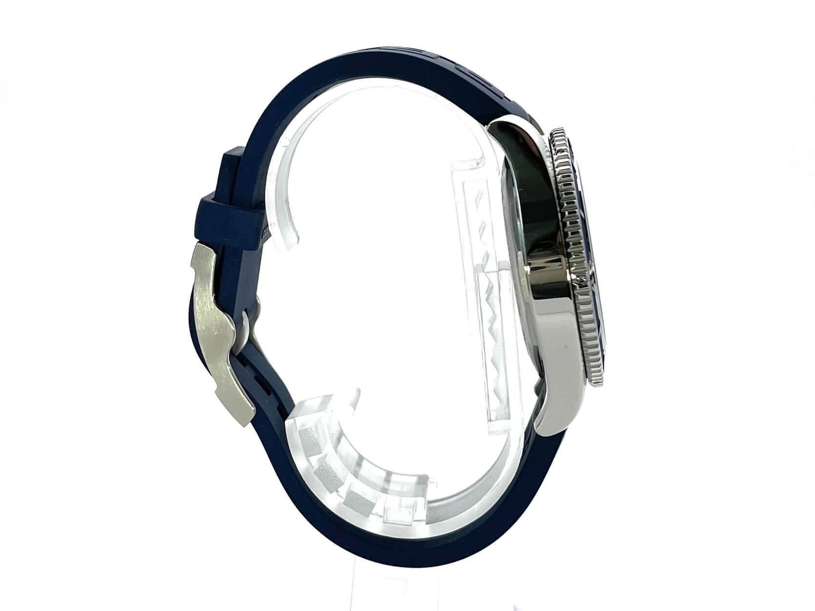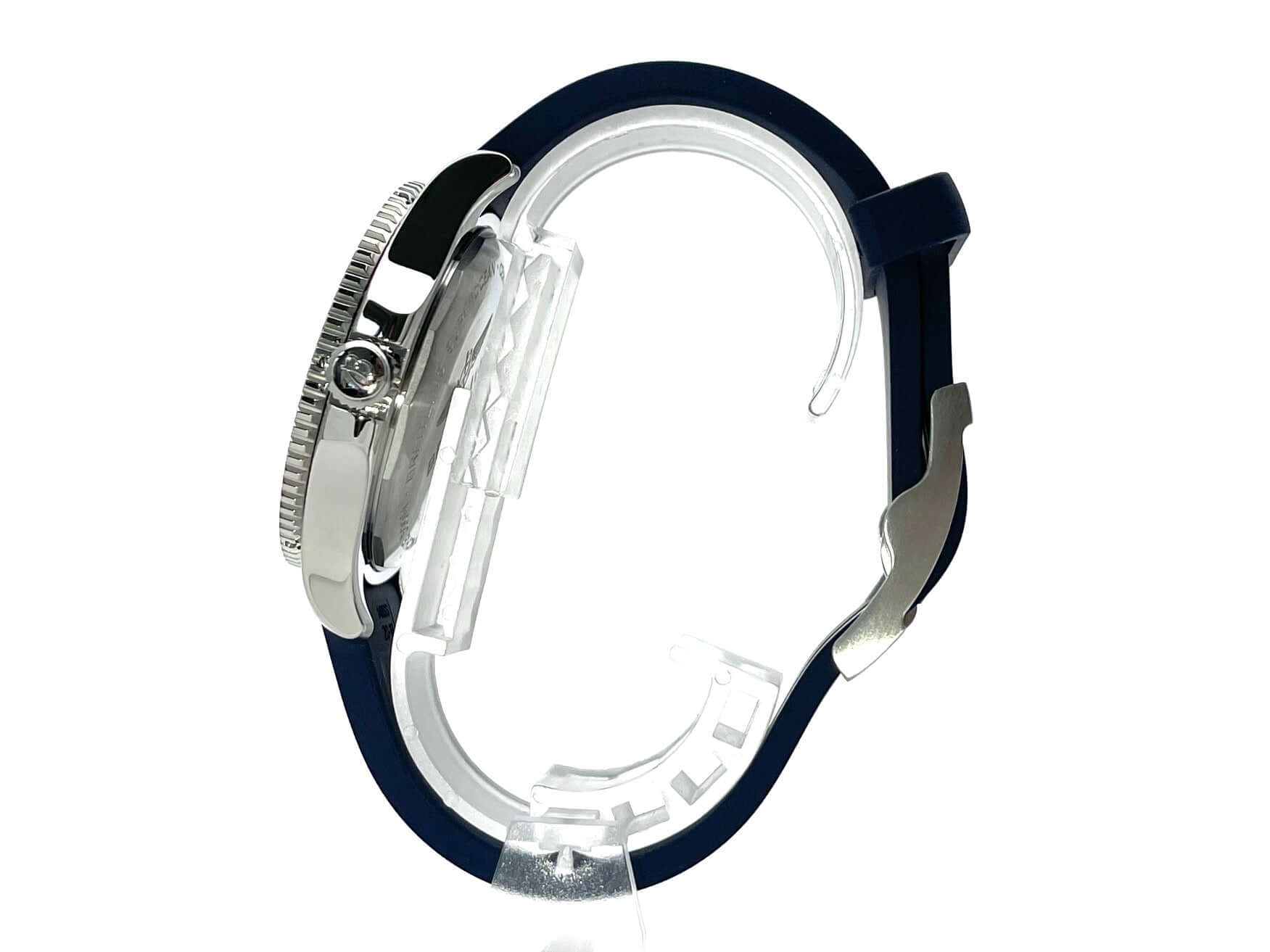 Gehäuse aus Edelstahl poliert und satiniert, Gehäusedurchmesser 42 mm, Gehäusehöhe 13,3 mm, Edelstahl Lünette mit blauer Einlage, 60 Minuten Skala, einseitig drehbar mit Sperre, weißes Zifferblatt mit aufgesetzten arabischen Leuchtziffern und Leuchtindizes, Leuchtzeiger, Sekundenzeiger mit Leuchtspitze, blaues Diver Pro III Kautschukband mit Dornschließe, Automatik, Kaliber Breitling 17, 25 Steine, 28.800 A/h, Gangreserve ca. 38 Stunden, Datum, Sekundenstopp zur sekundengenauen Einstellung der Uhrzeit, Chronometer, Saphirglas doppelseitig entspiegelt und bombiert, verschraubte Krone mit Flankenschutz, Edelstahlboden verschraubt, Wasserdicht bis zu 50 bar.