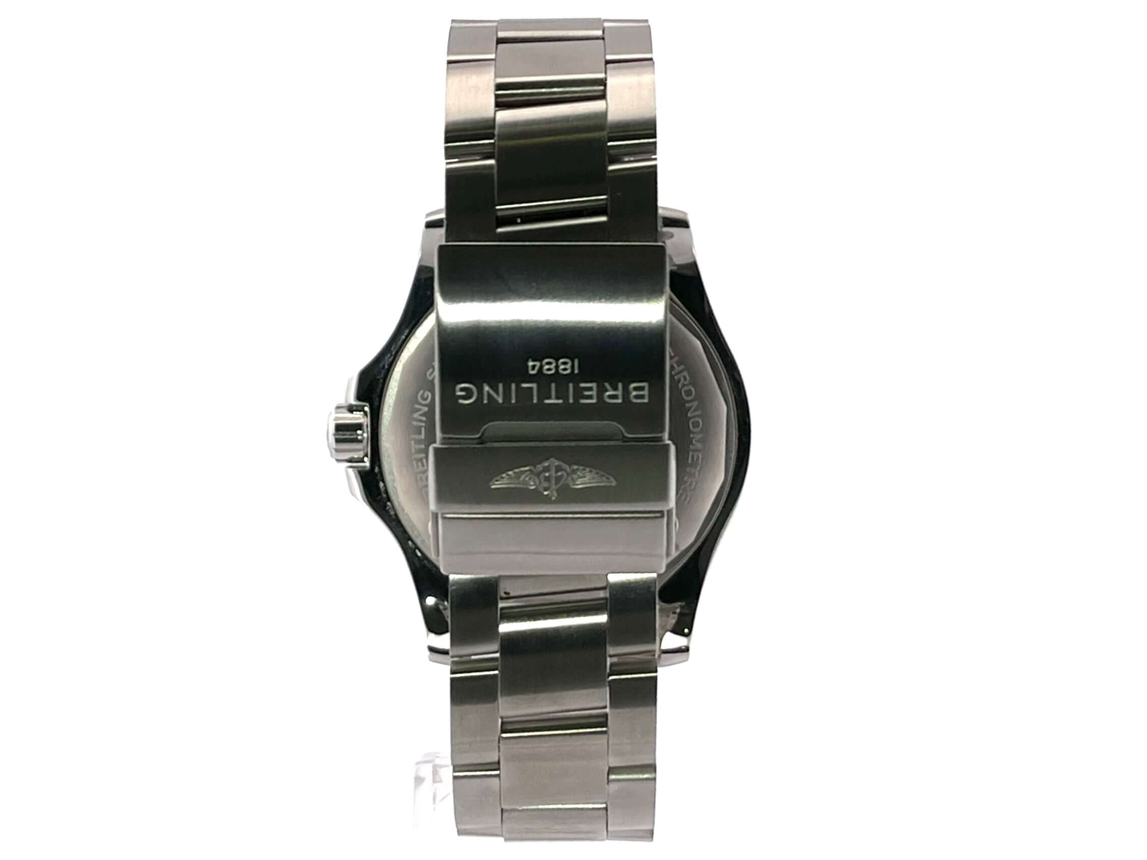 Gehäuse aus Edelstahl poliert und satiniert, Gehäusedurchmesser 44 mm, Gehäusehöhe 14,2 mm, Edelstahl Lünette mit schwarzer Einlage, 60 Minuten Skala, einseitig drehbar mit Sperre, Edelstahlband poliert und satiniert mit Faltschließe, schwarzes Zifferblatt mit aufgesetzten arabischen Leuchtziffern und Leuchtindizes, Leuchtzeiger, Sekundenzeiger mit Leuchtspitze, Automatik, Kaliber Breitling 17, 25 Steine, 28.800 A/h, Gangreserve ca. 38 Stunden, Datum, Chronometer, Sekundenstopp zur sekundengenauen Einstellung der Uhrzeit, Saphirglas doppelseitig entspiegelt und bombiert, Edelstahlboden verschraubt, verschraubte Krone mit Flankenschutz, Wasserdicht bis zu 100 bar.