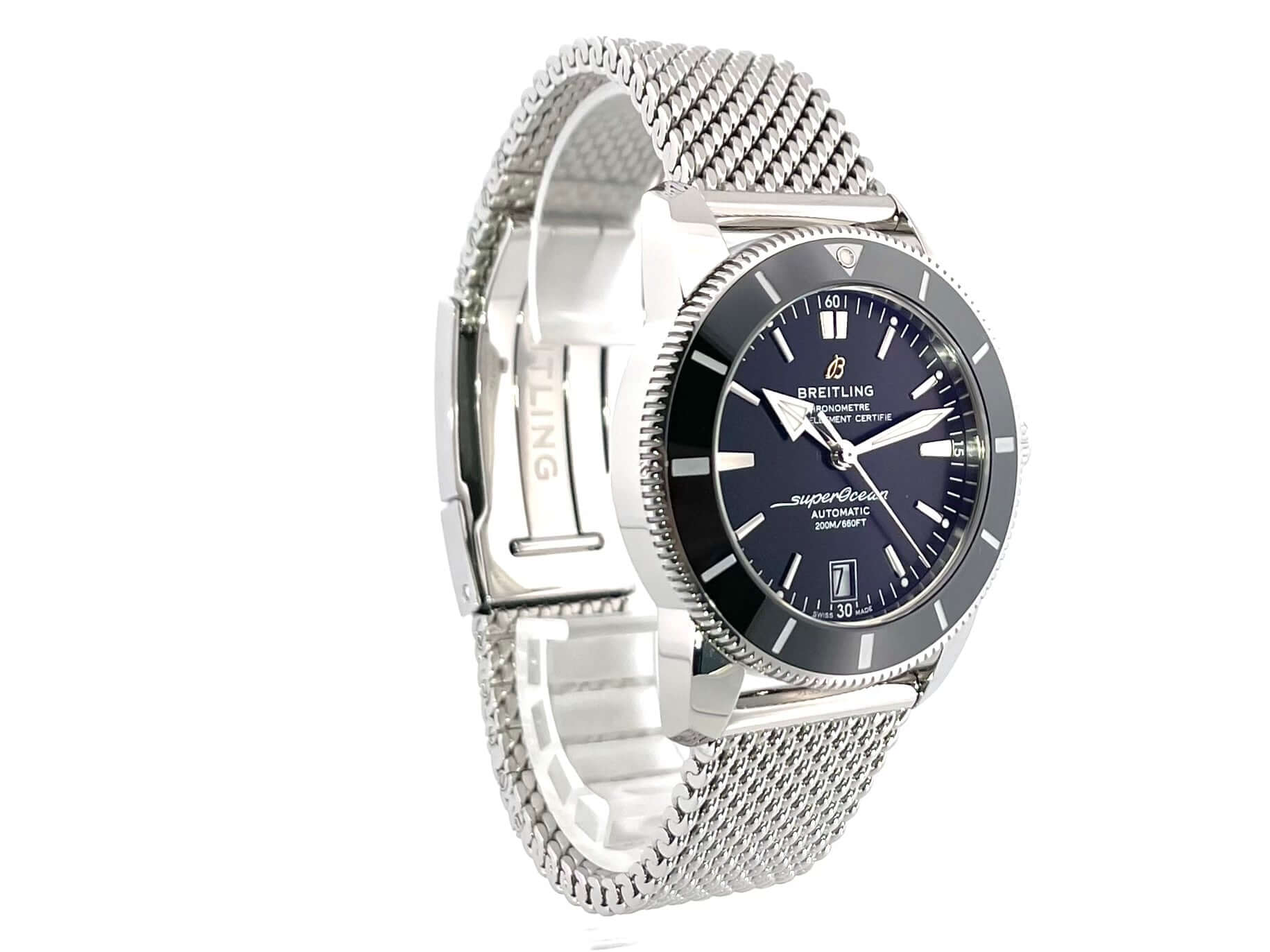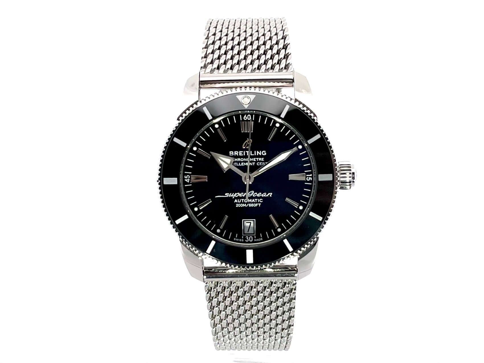 Gehäuse aus Edelstahl poliert und satiniert, Gehäusedurchmesser 42 mm, Gehäusehöhe 14,35 mm, Edelstahl Lünette mit schwarzer Keramikeinlage, 60 Minuten Skala in eine Richtung drehbar mit Sperre, Ocean Classic Edelstahlband poliert und satiniert mit Faltschließe, schwarzes Zifferblatt mit aufgesetzten Leuchtindexen, Leuchtzeiger, Uhrwerk Automatik, Kaliber Breitling B20 mit 28 Steine, Schwingung 28.800 A/h, Gangreserve für ca. 70 Stunden, Datumsanzeige, Chronometer mit Zeugnis, Saphirglas, doppelseitig entspiegelt und bombiert, Krone verschraubt mit Flankenschutz, 2 Dichtungen, Edelstahlboden verschraubt, Wasserdicht bis zu 20 bar.