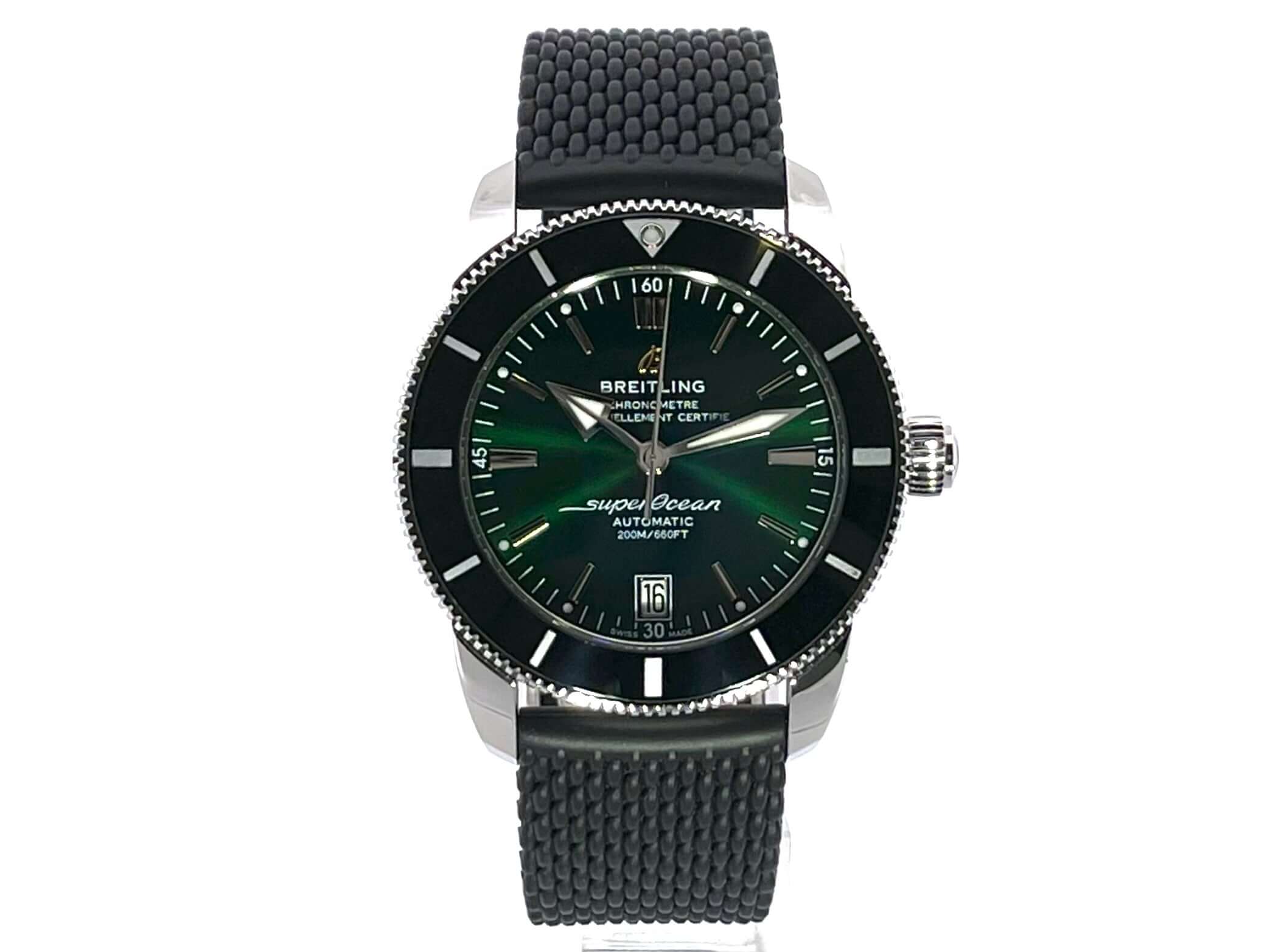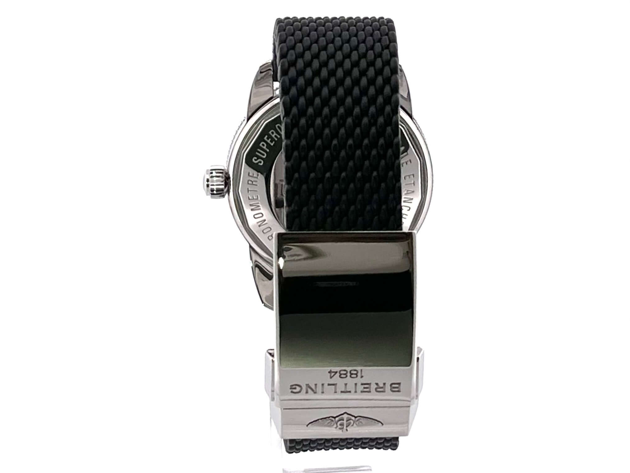 Gehäuse aus Edelstahl poliert und satiniert, Gehäusedurchmesser 42 mm, Gehäusehöhe 14,35 mm, Edelstahl Lünette mit schwarzer Keramikeinlage, 60 Minuten Skala und in eine Richtung drehbar mit Sperre, schwarzes Aero Classic Kautschukband mit Faltschließe, grünes Zifferblatt mit aufgesetzten Leuchtindizes, Leuchtzeiger, Uhrwerk Automatik, Kaliber Breitling B20 mit 28 Steine, Schwingung 28.800 A/h, Gangreserve für ca. 70 Stunden, Datumsanzeige, Chronometer mit Zeugnis, Saphirglas, doppelseitig entspiegelt und bombiert, Krone verschraubt mit Flankenschutz, 2 Dichtungen, Edelstahlboden verschraubt, Wasserdicht bis zu 20 bar.