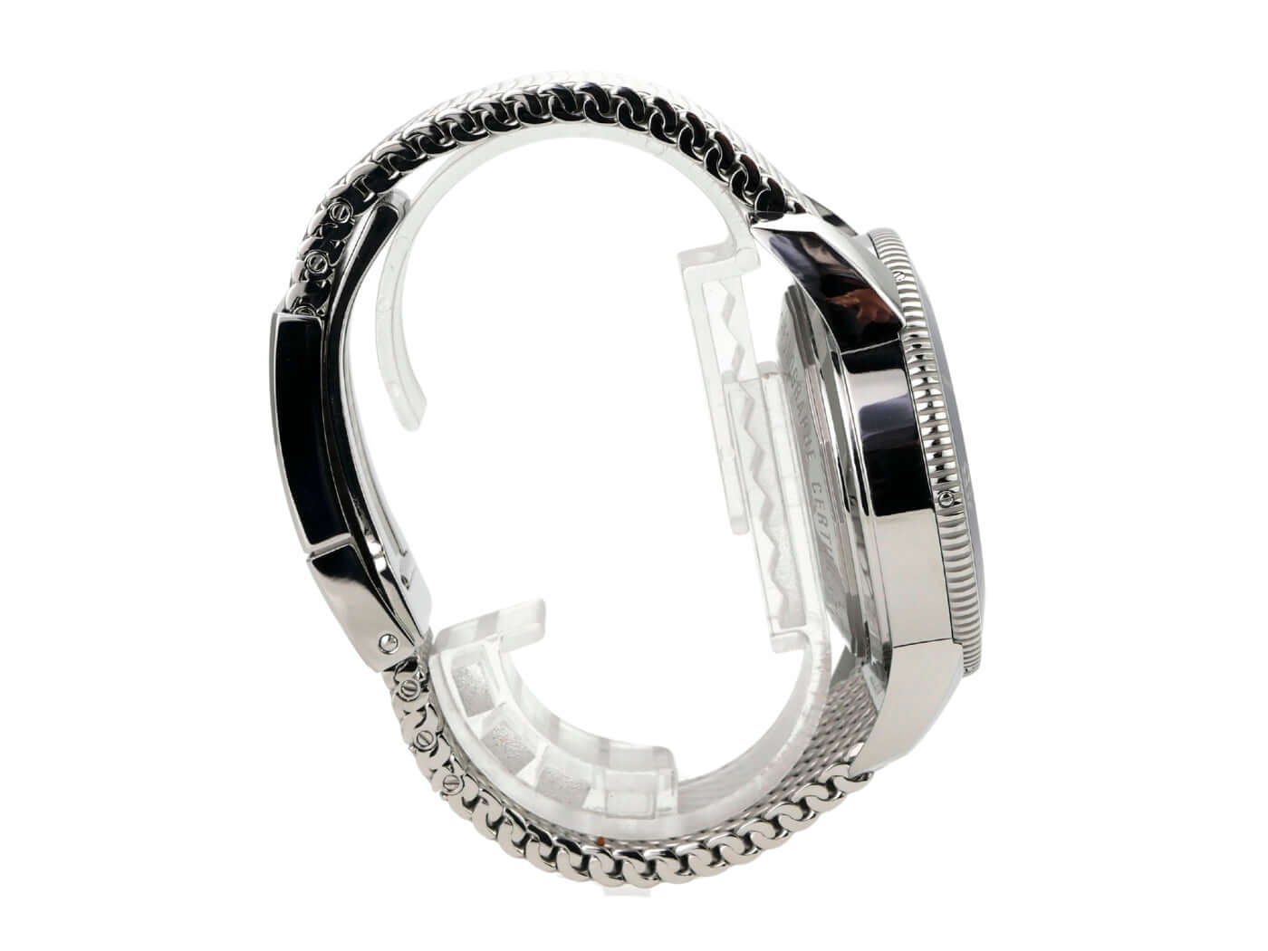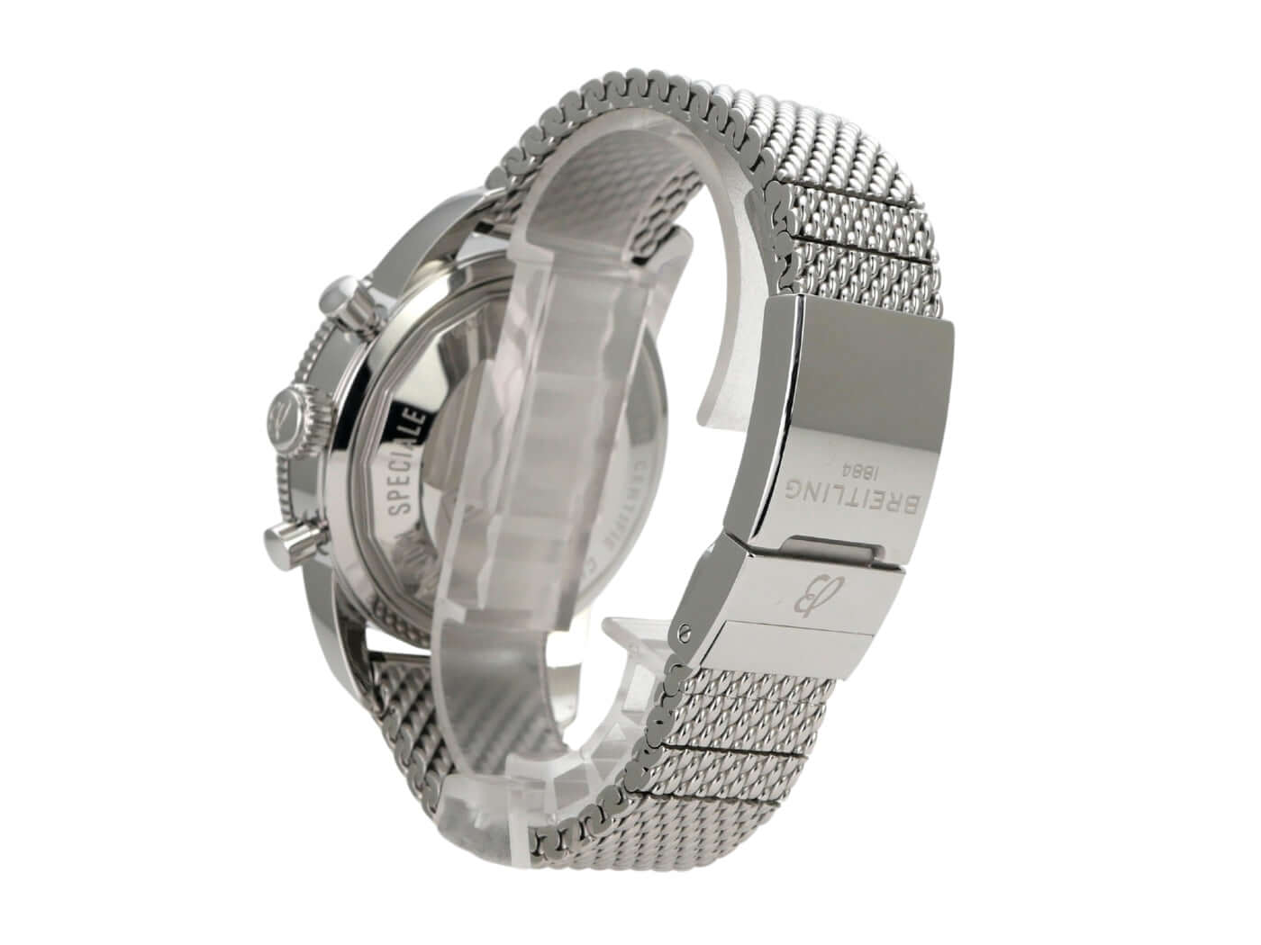 Gehäuse aus Edelstahl poliert und satiniert, Gehäusedurchmesser 44 mm, Gehäusehöhe 15,65 mm, Edelstahl Lünette mit blauer Keramikeinlage, in eine Richtung drehbar mit Sperre, Edelstahlband mit Faltschließe, blaues Aero Classic Kautschukband mit Faltschließe, blaues Zifferblatt mit aufgesetzten Leuchtindizes, Leuchtzeiger, Uhrwerk Automatik, Kaliber Breitling 13 mit 25 Steine, Schwingung 28.800 A/h, Gangreserve für ca. 42 Stunden, Datumsanzeige, Chronometer mit Zeugnis, Saphirglas, doppelseitig entspiegelt und bombiert, Krone verschraubt mit 2 Dichtungen, Edelstahlboden verschraubt, wasserdicht bis zu 20 bar.