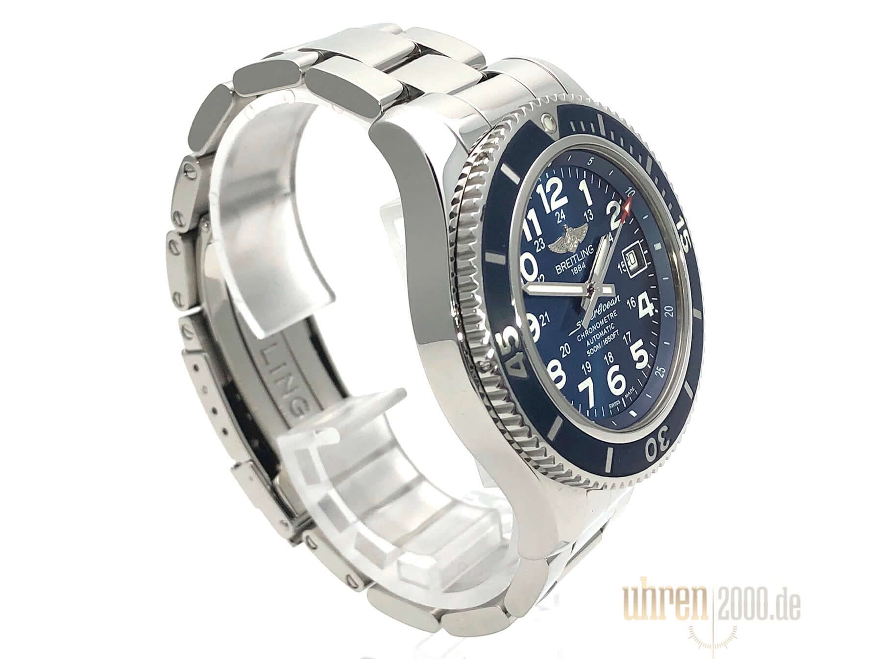 Gehäuse aus Edelstahl poliert und satiniert, Gehäusedurchmesser 42 mm, Gehäusehöhe 13,3 mm, Edelstahl Lünette mit blauer Einlage, 60 Minuten Skala, einseitig drehbar mit Sperre, Professional III Edelstahl Armband poliert und satiniert mit Faltschließe, Zifferblatt Mariner Blau mit aufgesetzten arabischen Leuchtziffern, Leuchtzeiger, Sekundenzeiger mit Leuchtspitze, Uhrwerk Automatik, Kaliber Breitling 17, 25 Steine, 28.800 A/h, Gangreserve ca. 40 Stunden, Datum, Chronometer mit Zeugnis, Sekundenstopp zur sekundengenauen Einstellung der Uhrzeit, Saphirglas doppelseitig entspiegelt und bombiert, verschraubte Krone mit Flankenschutz, Edelstahlboden verschraubt, Wasserdicht bis zu 50 bar.