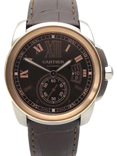 Cartier Calibre de Cartier Edelstahl / 18 kt Rotgold Krokoleder braun Ref. W7100051 aus 2013