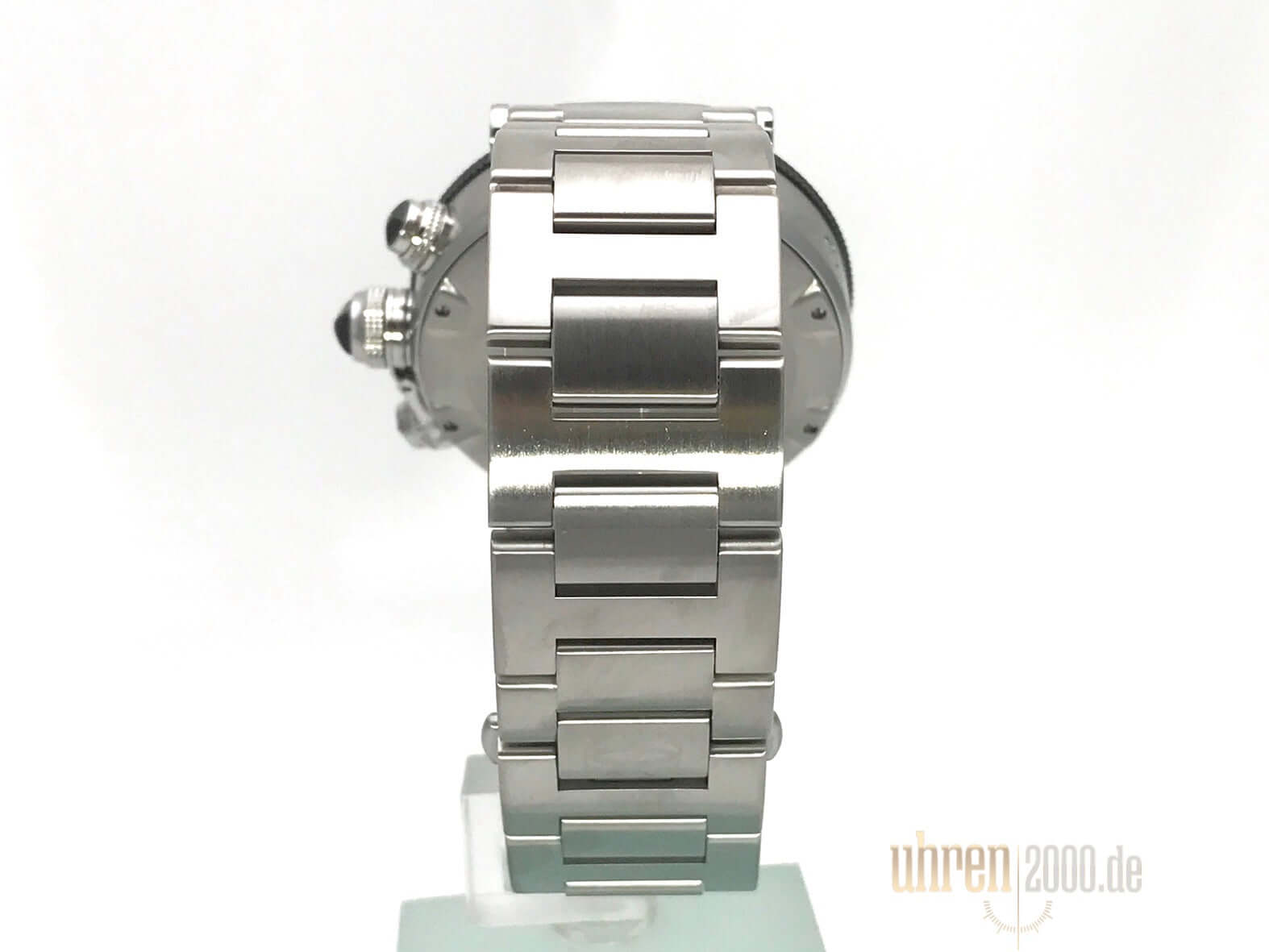 Gehäuse aus Edelstahl poliert, Durchmesser 41,5 mm, Höhe 14,6 mm, Edelstahl Lünette poliert, Edelstahlband poliert und satiniert mit Doppelfaltschließe, zusätzlich Keramikband mit Faltschließe, Zifferblatt Schwarz, Automatikwerk, Chronograph, Kaliber Cartier, Saphirglas, Datumsanzeige, verschraubter Boden aus Edelstahl, Wasserdicht bis zu 10 bar.