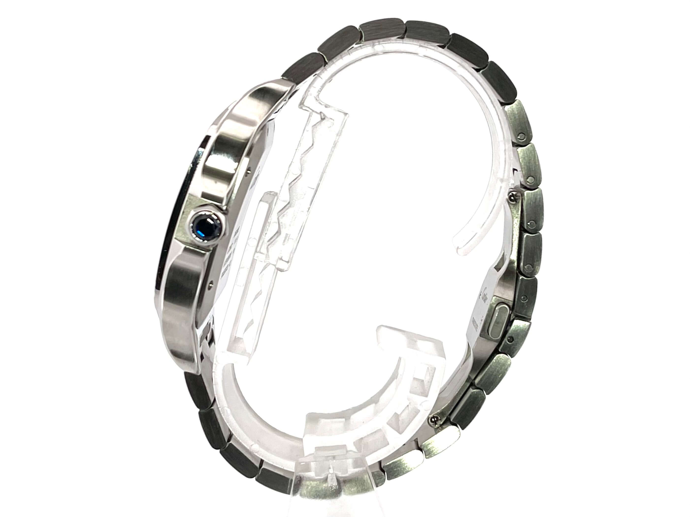 Gehäuse aus Edelstahl poliert und satiniert, Gehäusedurchmesser 39,8 mm, Gehäusehöhe 9,08 mm, Edelstahl Lünette poliert, Edelstahlband satiniert mit Doppelfaltschließe, zweites Armband aus Kalbsleder mit Quickswitch, silberfarbenes Zifferblatt, Zeiger aus gebläutem Stahl, Automatikwerk, Kaliber Cartier 1847 MC, Datum, Saphirglas, Krone mit Flankenschutz, verschraubter Boden aus Edelstahl, Wasserdicht bis zu 10 bar.